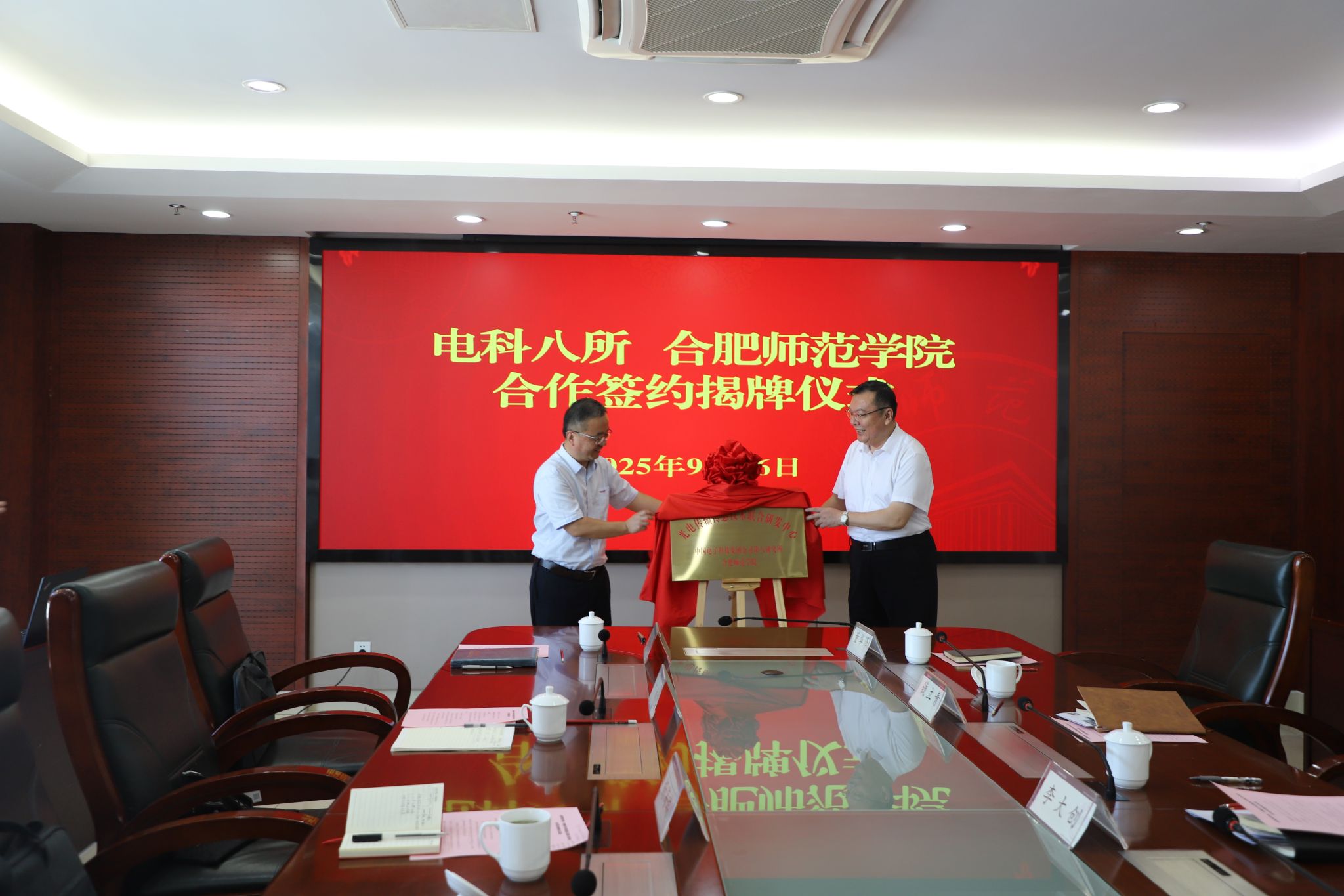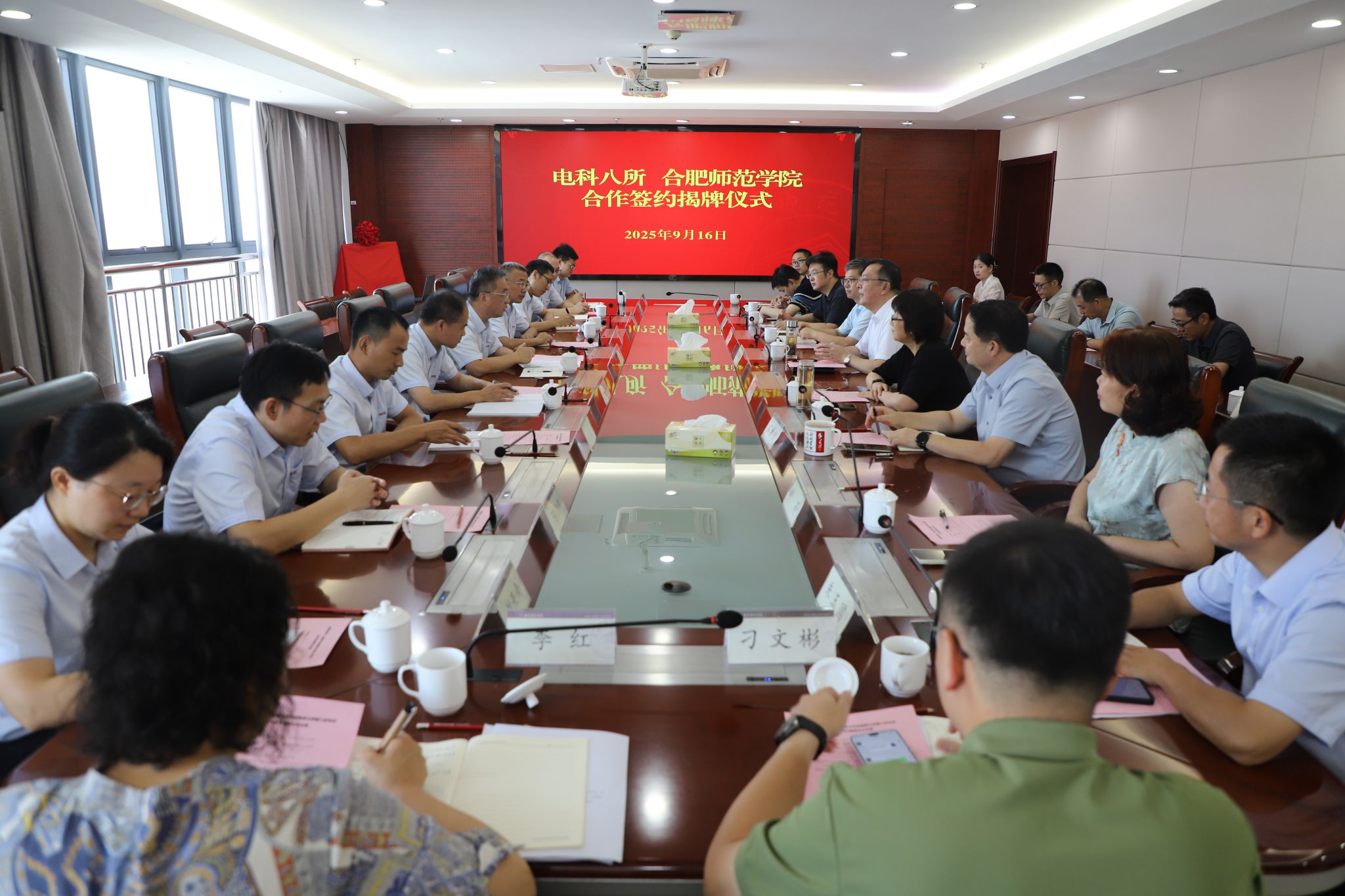 9月16日上午,beat365中文官方网站与电科八所合作协议签约揭牌仪式在锦绣校区举行。电科八所党委书记、所长姬可理,副所长张承,院党委书记徐成钢,党委副书记、院长方东玲,党委委员、副院长华银峰,以及双方相关部门负责人共同出席和见证签约仪式。仪式由方东玲主持。