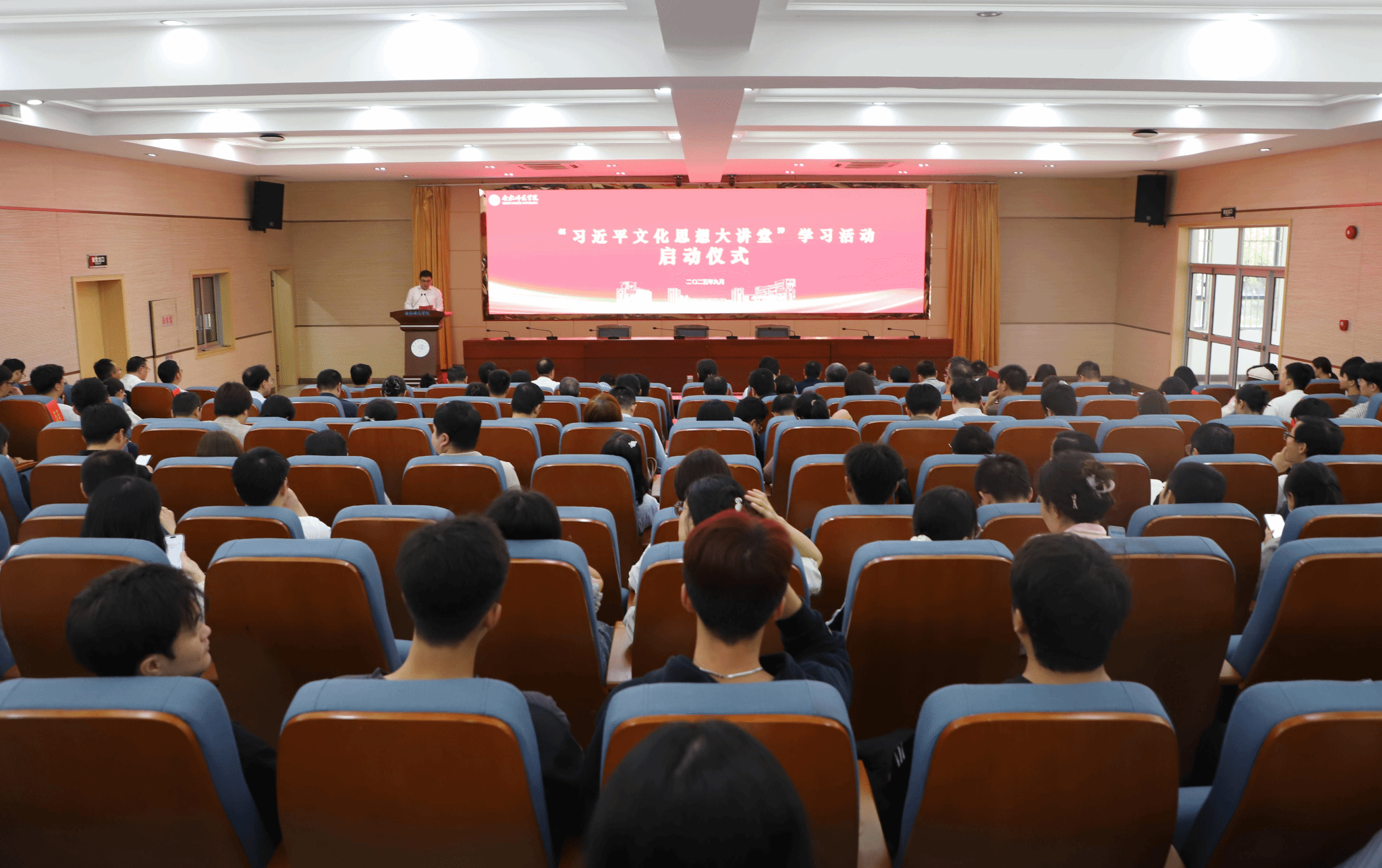 为深入学习贯彻习近平新时代中国特色社会主义思想,贯彻落实全国教育大会精神,推动习近平文化思想有机融入教育教学,学院面向全校师生开展“习近平文化思想大讲堂”学习活动。9月26日,学习活动启动仪式在锦绣校区举行,学院党委书记徐成钢,党委副书记梁立昌,党委委员、副院长周端明;宣传部、人事处、学生工作处、教务处主要负责人,各二级学院处级干部、教师及学生代表;马克思主义学院全体教师、教务处工作人员等近300名师生参加启动仪式。启动仪式由周端明主持。