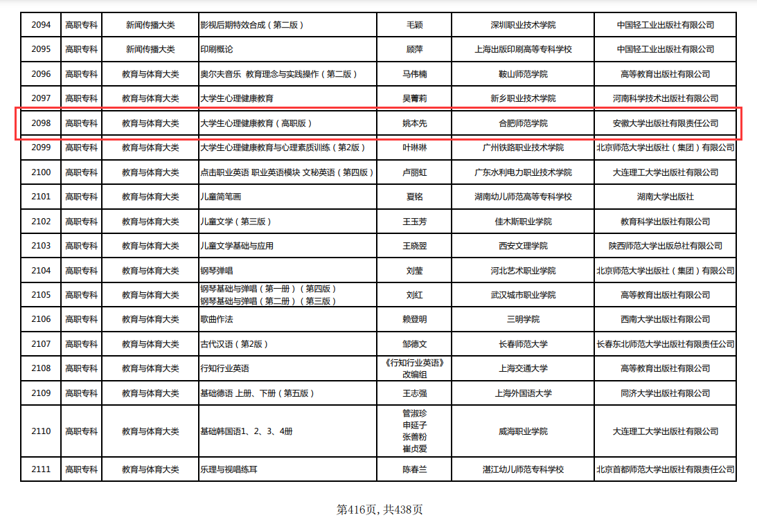 姚本先主编的《大学生心理健康教育(高职版)》为安徽省高等学校“十三五”规划教材,此次作为新申报教材入选首批“十四五”职业教育国家规划教材,充分展示了学院教材改革高质量发展成果,彰显了学院在教材建设领域中取得的新成绩。