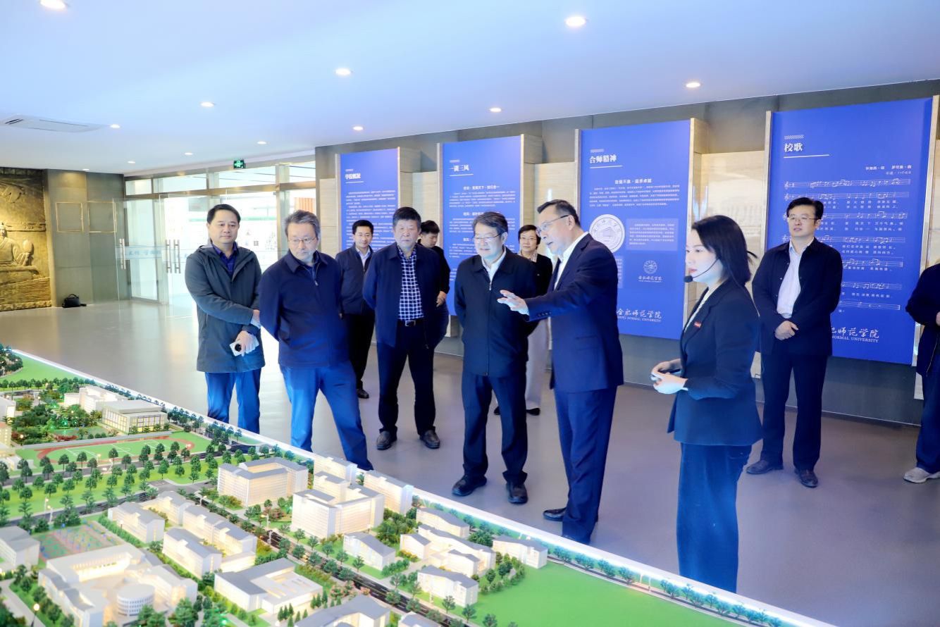 会前,高鸿钧院士一行在院领导的陪同下参观了校史馆、学陶馆,回顾学校发展历程,详细了解学科建设、人才培养、社会服务等方面取得的重要办学成就,并对学校近年来的快速发展表示高度赞赏。他们还与当年的数学系授课教师程剑秋亲切会面,对母校教师兢兢业业的教学态度、精益求精的治学精神表达敬意与感谢。