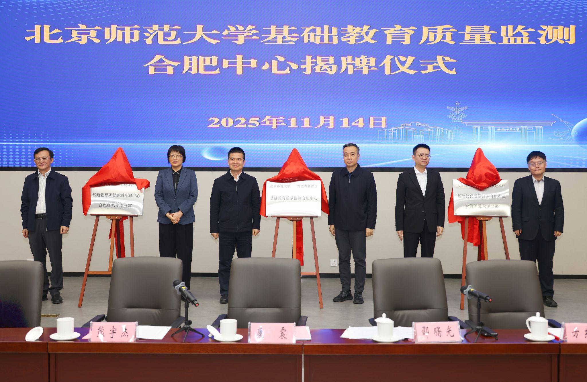 随后,与会领导共同为北京师范大学基础教育质量监测合肥中心、北京师范大学基础教育质量监测合肥中心安徽师范大学分部、北京师范大学基础教育质量监测合肥中心beat365中文官方网站分部揭牌。