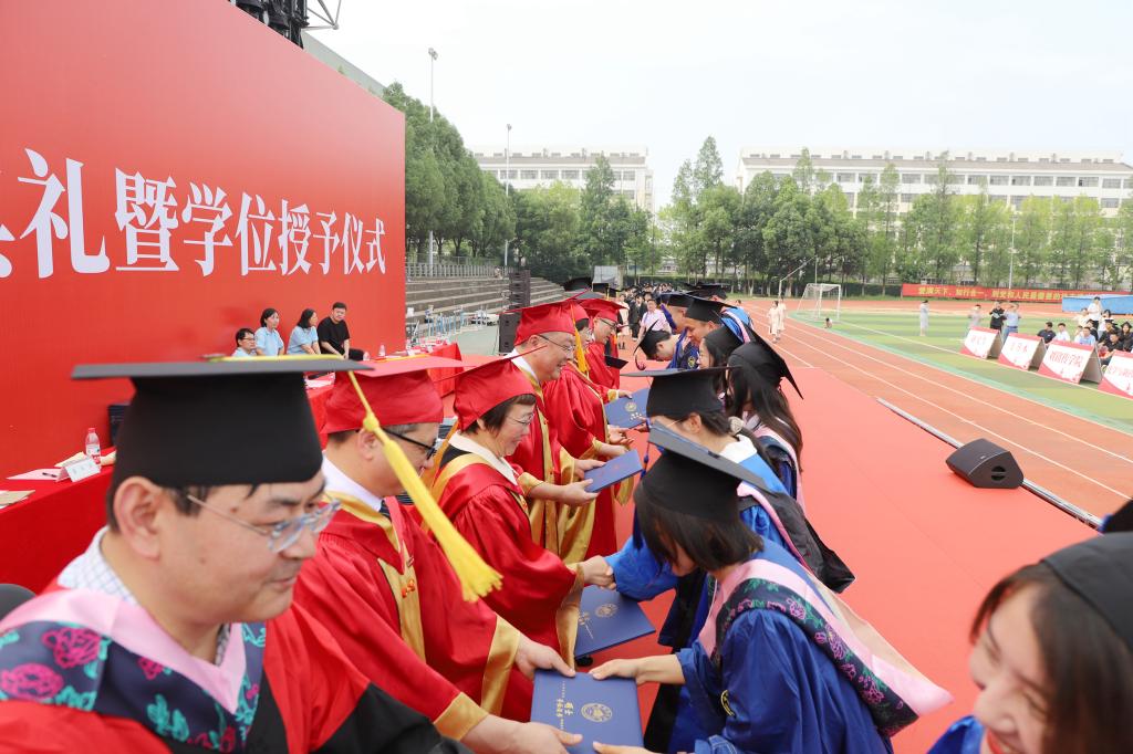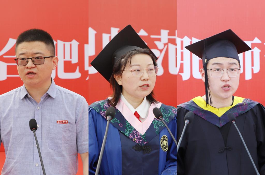 教师代表、物理与材料工程学院马小航发言,他希望毕业生们志存高远,做一个有抱负有理想的人;勤勉笃行,做一个有责任有担当的人;笑对人生,做一个拥抱社会的人。硕士毕业生代表、马克思主义学院袁玉玲,本科毕业生代表、电子信息与集成电路学院葛正宇先后发言,他们表示将谨记“爱满天下,知行合一”的校训,肩负起时代赋予青年人的责任和使命,争当时代新人。