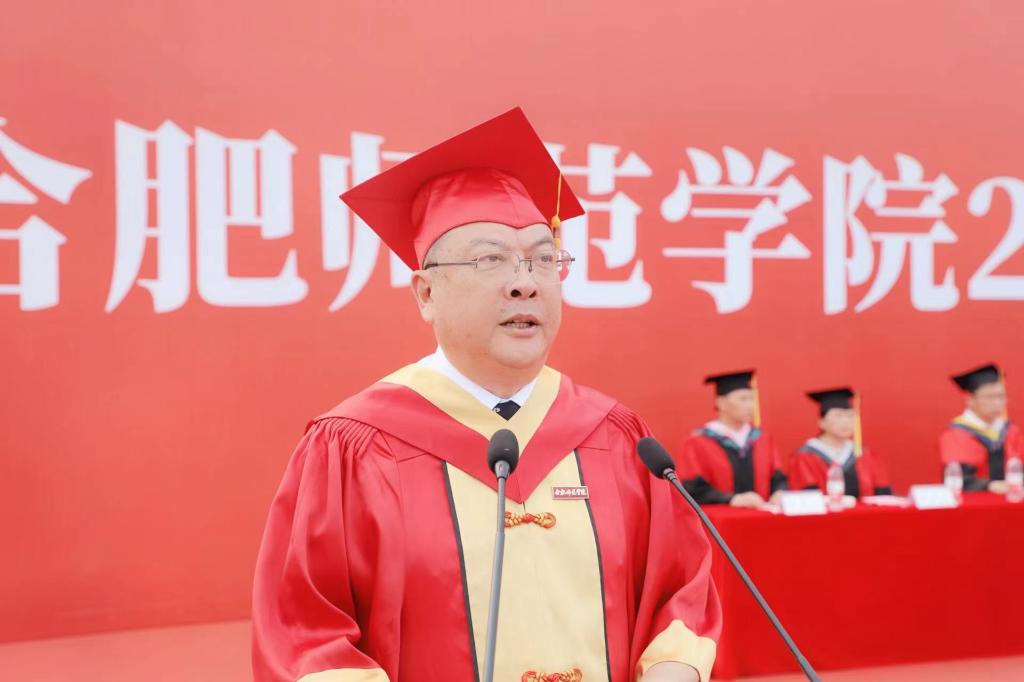 徐成钢深情寄语全体毕业生,要弘扬“自强不息、追求卓越”的合师精神,珍惜宝贵的青春年华,要坚定信仰信念,做志存高远的合师人;要担当时代使命,做知行合一的合师人;要矢志砥砺奋进,做意志坚强的合师人;要坚持严以修身,做爱满天下的合师人,把青春的“小我”融入强国的“大我”,积极投身服务基础教育和经济社会发展主战场,让青春之花绽放在祖国最需要的地方,在以中国式现代化全面推进中华民族伟大复兴的生动实践中书写精彩的人生。