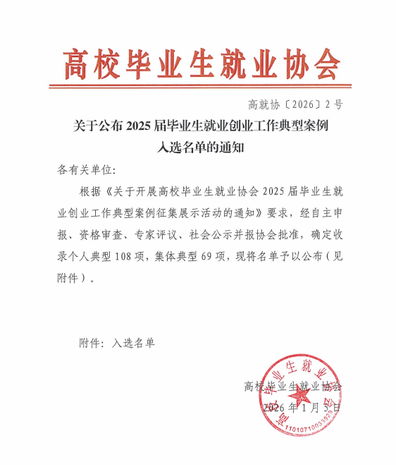 近日,beat365官网申报的案例《多维协同,精准赋能——beat365中文官方网站构建“四全”工作机制,助力毕业生高质量就业》,经过严格的自主申报、资格审查、专家评议、社会公示并报协会批准等环节,成功入选高校毕业生就业协会“2025届高校毕业生就业创业工作典型案例”。这是对学校过去一年在促进毕业生更加充分更高质量就业方面创新实践与显著成效的充分肯定。