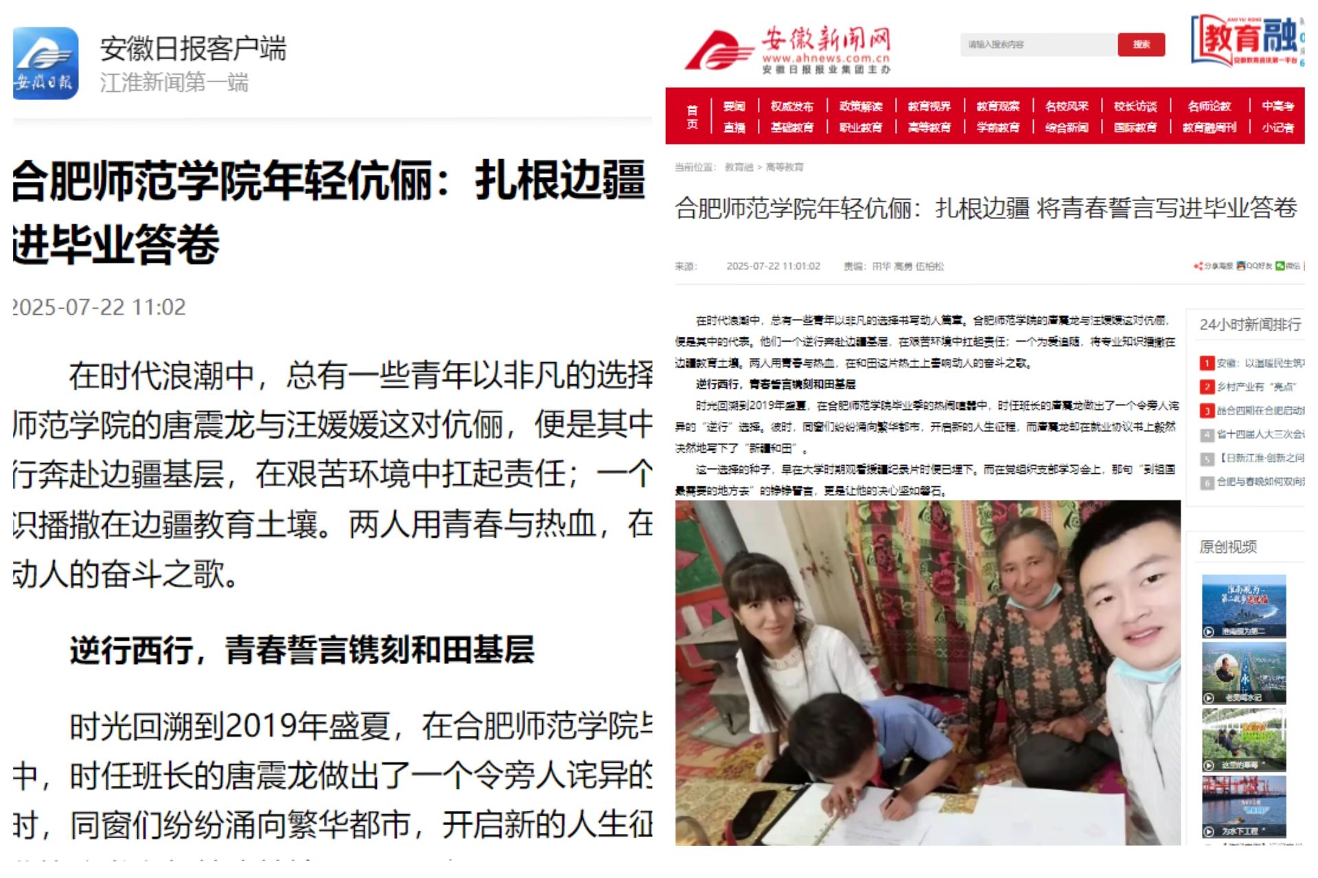 安徽日报等报道beat365官网校友伉俪扎根边疆书写“家国情怀”的感人事迹
