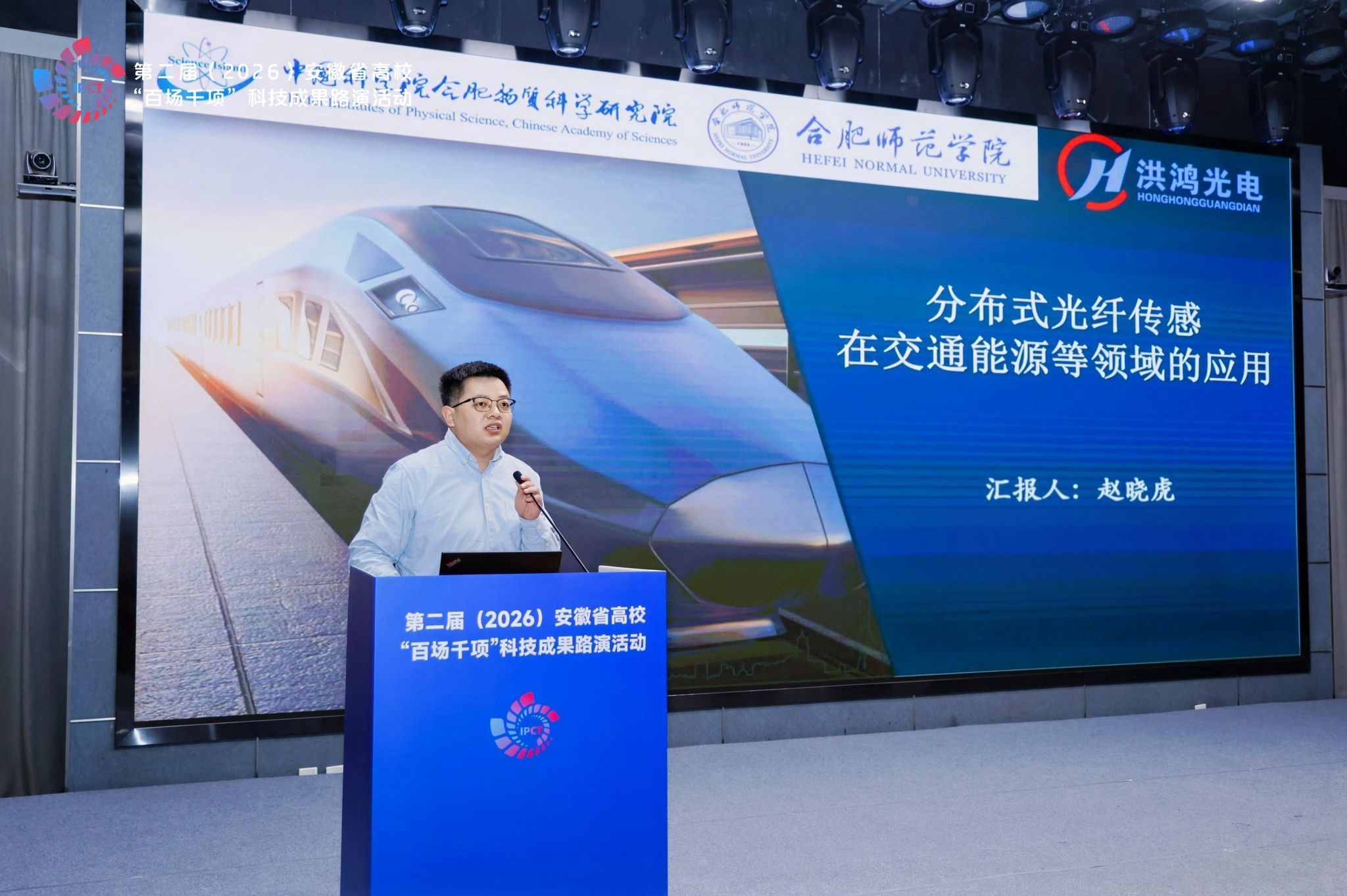 beat365官网电子信息与集成电路学院教师赵晓虎的研究成果“分布式光纤传感在交通能源等领域的应用”,凭借鲜明的技术突破与广阔的产业落地前景,成功入选人工智能专场路演,获得现场专家及企业代表的高度关注与认可。该成果依托分布式光纤声波传感技术,以光纤为信号传输与声波感知的核心载体,融合人工智能识别算法,可精准识别交通、能源等领域基础设施的沉降变形、坍塌、入侵及破坏等安全隐患,实现智能化预警,为交通能源基础设施工程安全提供可靠技术支撑。