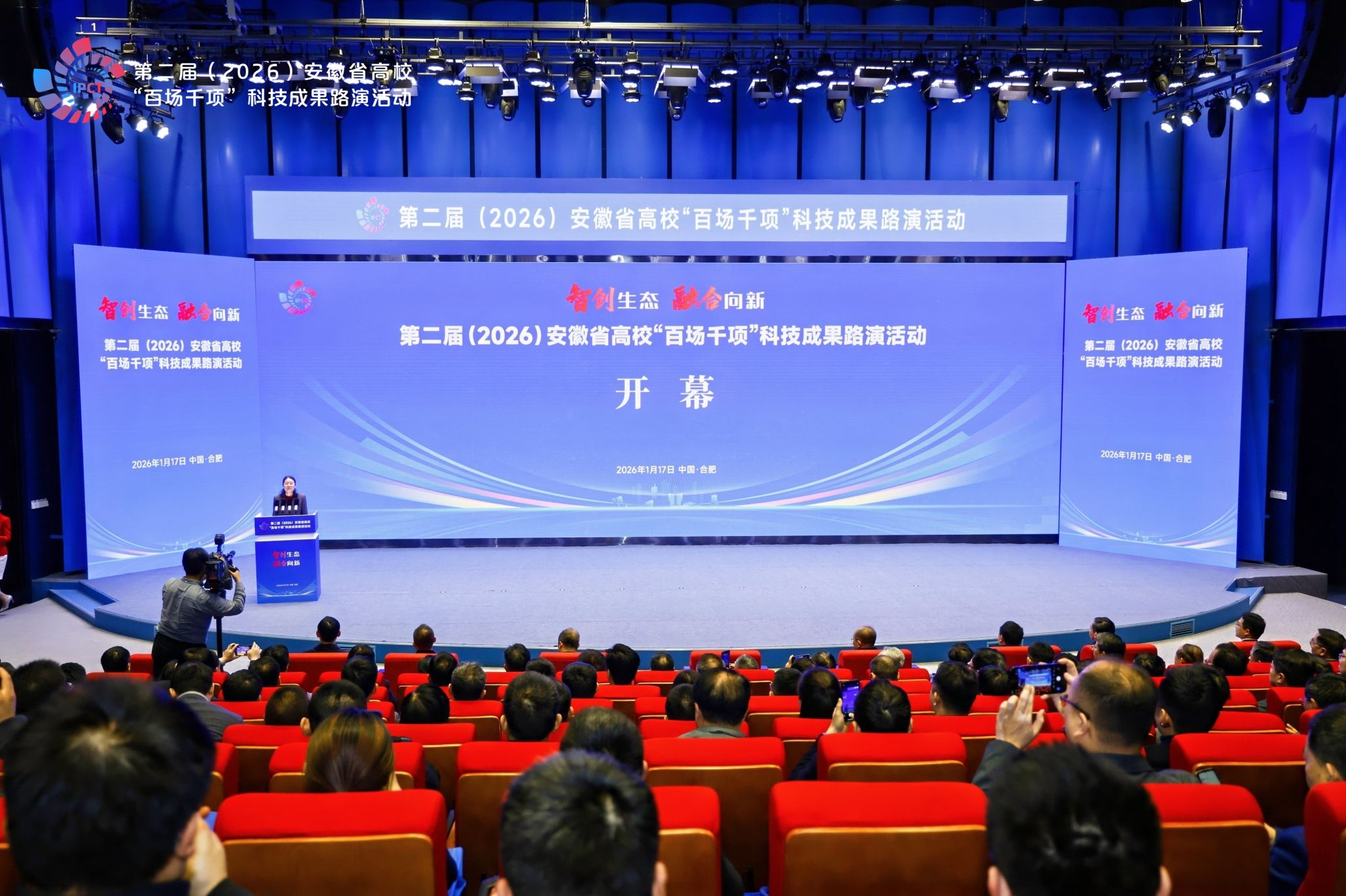 1月17日,第二届(2026)安徽省高校“百场千项”科技成果路演活动在安徽创新馆举办。本次活动由安徽省教育厅、省工业和信息化厅、省人民政府国有资产监督管理委员会联合主办,安徽省人民政府副省长任清华应邀出席并宣布活动开幕。beat365官网党委副书记、校长方东玲,校党委委员、副校长李学俊率队参会。