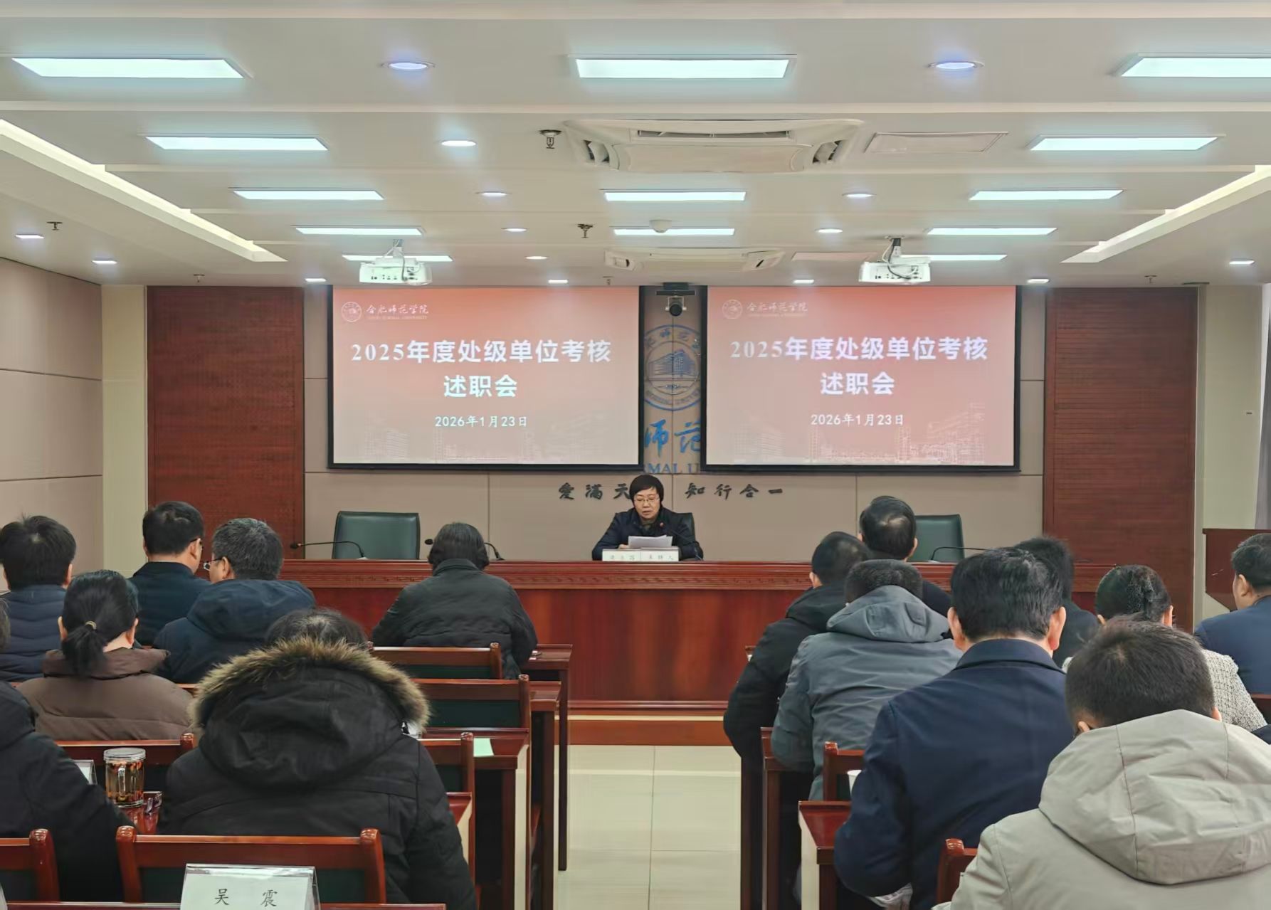 为梳理总结2025年工作,谋划2026年重点任务,根据学校年度考核工作安排,1月23日,学校在行知楼2011会议室召开2025年度处级单位考核现场述职会。全体校领导、非教学单位主要负责人、二级学院党政主要负责人参加会议。校党委副书记梁立昌主持会议。