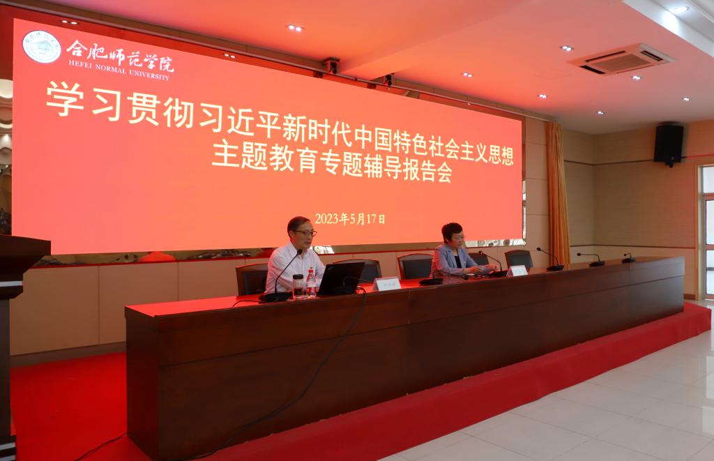 5月17日下午,学院党委学习贯彻习近平新时代中国特色社会主义思想主题教育读书班专家辅导报告会在锦绣校区学术报告厅举行。省委党校(安徽行政学院)马克思主义学院院长、教授、博士生导师汪兴福作辅导报告。党委副书记梁立昌主持报告会。党委委员、纪委书记、监察专员徐文林,党委委员、组织部部长赵帮恚,党委委员、宣传部部长、统战部部长常树宝出席,全体处以上干部、全体辅导员参加会议。