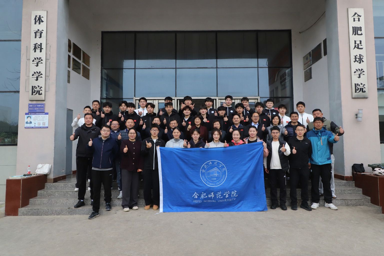 出征号角已经吹响,全体与会人员满怀信心与期待。仪式结束后,全体人员在体育馆前合影留念。
