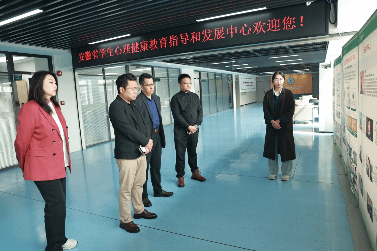 会前,孙震一行参观校园和安徽省学生心理健康教育指导和发展中心,详细了解学校心理平台建设相关情况。