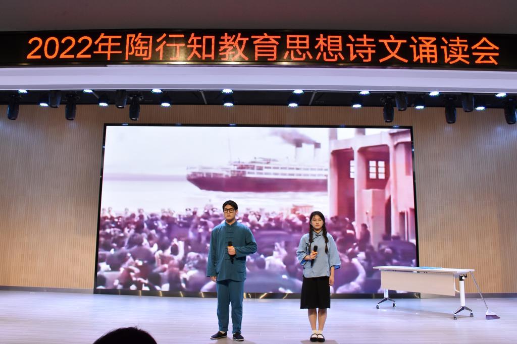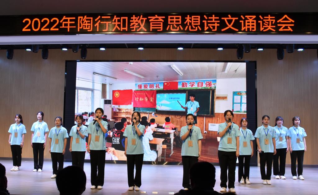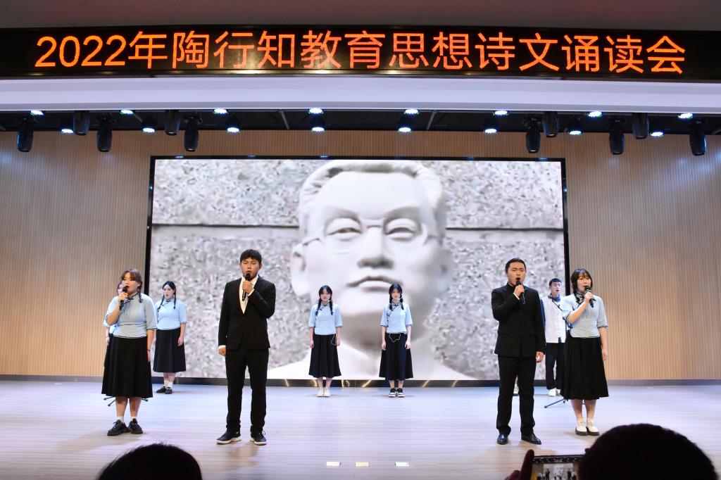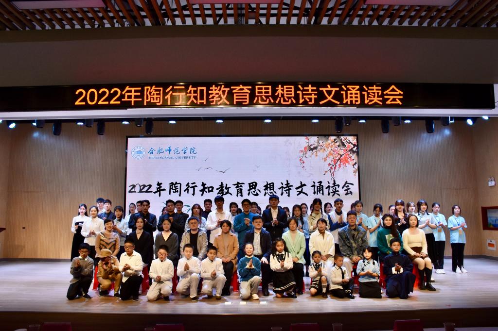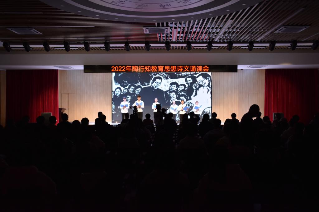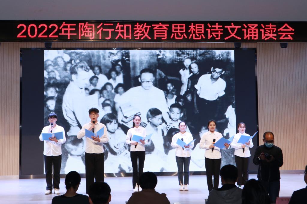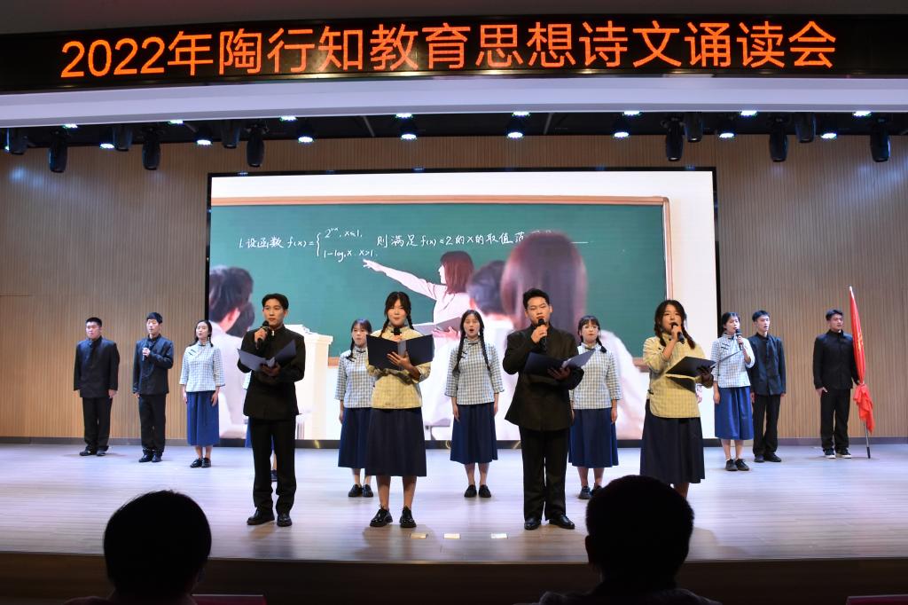 本网讯 11月18日下午,学院2022年陶行知教育思想诗文诵读会在锦绣校区大学生活动中心隆重举行。安徽省陶行知研究会秘书处、beat365中文官方网站附属西安路学校、宣传部、学生工作部、院团委及有关二级学院的负责人和师生代表200余人到场观看。