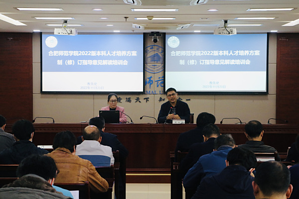 本网讯 11月23日下午,学院在锦绣校区行知楼2011会议室召开2022版本科人才培养方案制(修)订指导意见解读培训会。院党委委员、副院长周端明出席会议,教务处相关负责人、各二级学院院长、副院长、专业负责人、教研室主任、教学秘书及教务处全体人员参加会议。