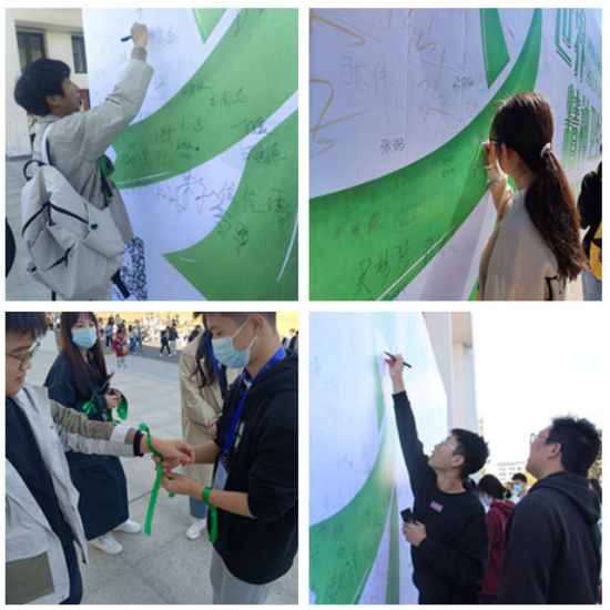 本次系列活动以专题展板、印发宣传册、公众号推文、开展现场签名和赠送“绿丝带”等方式多途径开展宣传。10月10日,学生工作处心理健康教育中心分别在锦绣校区竹园广场与滨湖校区博学楼前放置大型展板,开展关注精神健康签名活动,并赠送象征中国精神卫生标志的绿丝带,号召更多同学正视心理需求,关注心理健康问题,提升精神卫生水平。随后将已签满姓名的展板进行为其3天的宣传,吸引全院学生关注,进而营造良好的关注心理健康的氛围。