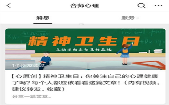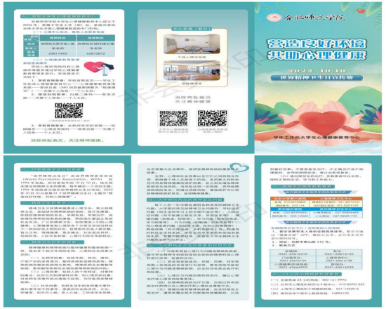 同时,心理健康教育中心编印了“精神卫生日”彩色宣传折页,发放给全院学生,并在“合师心理”公众号平台发布精神卫生科普文章,形成线上线下协调联动,在宣传精神卫生健康知识同时,提供了学院心理中心与权威精神卫生机构的心理服务热线,为同学们提供及时贴心的心理服务。