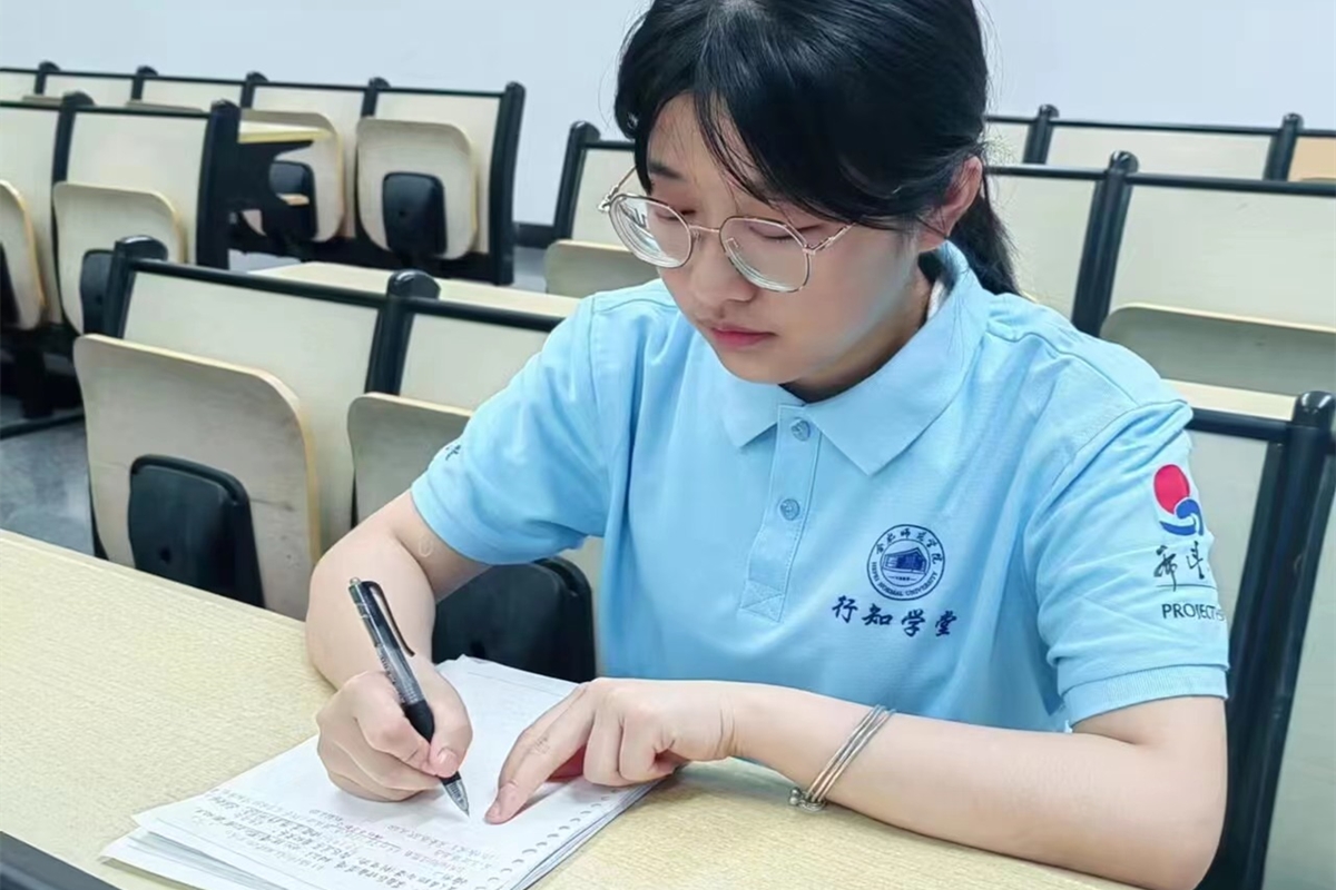 与袁理一同参加源潭行知学堂的还有来自华南理工大学2021级经济学专业赵梦琴同学,负责教授《诗歌朗诵》《文史典籍》课程。