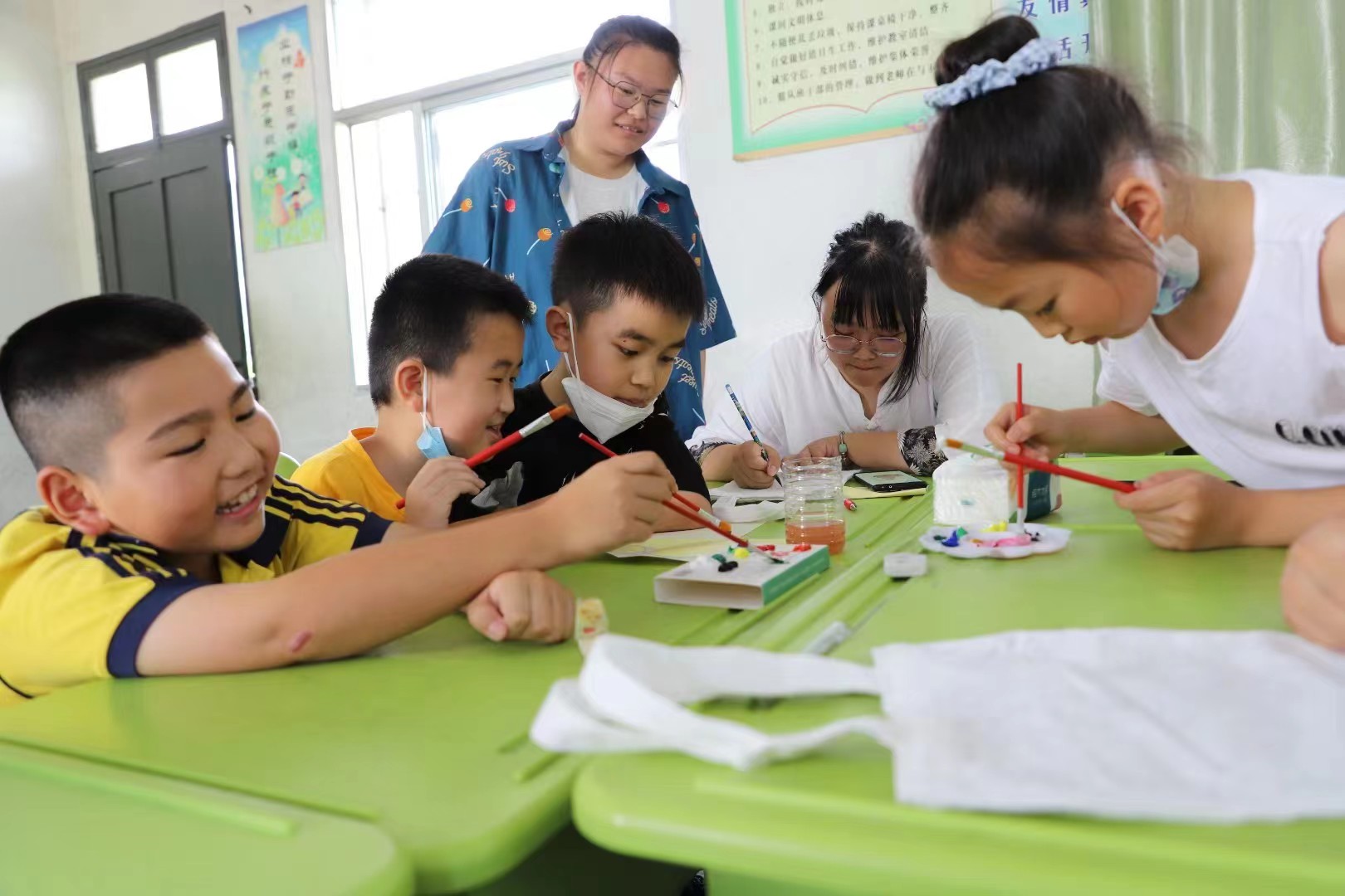 潘琪与小学员上美术课(左一)