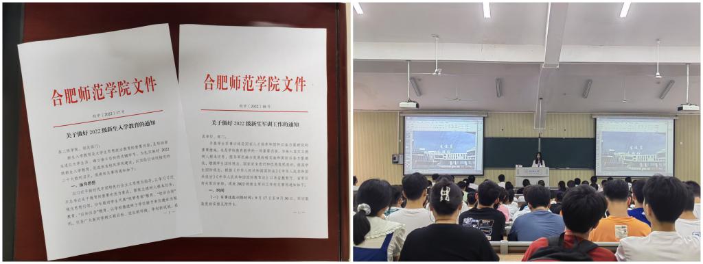 新生入学教育是大学生涯的第一课,是引导新生适应大学生活的重要环节,学生处精心拟定入学教育方案,于9月13日至16日集中开展新生入学教育,教育内容分为“筑梦青春”“初识合师”“应知应会”三大方面,教育引导新生树立远大理想,融入校园生活,为努力成为德智体美劳全面发展的社会主义建设者和接班人打下坚实基础。校自律会学生干部面向全校新生开展“新生适应性主题班会”,围绕“环境适应、学业规划、校园活动、校园安全”等内容,以学长学姐的视角向新生们介绍多姿多彩的校园生活,引导大家尽快适应学校环境、合理规划学习目标、顺利完成大学生涯。9月16日至9月30日通过军事技能训练、军事理论课等形式开展新生军训,帮助新生坚定信念、明确目标、尽快融入大学学习和生活,构建社会、学校、学院共画高校新生入学适应同心圆的生动局面。