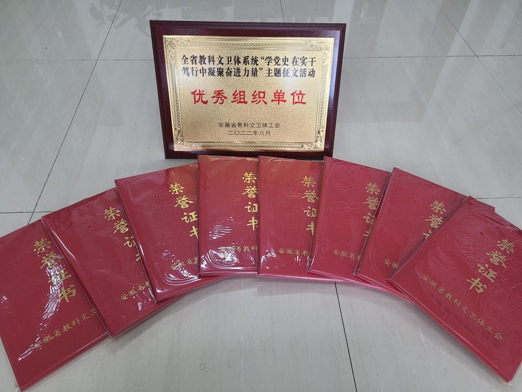 本网讯 为深入开展党史、新中国史、改革开放史、社会主义发展史教育,推进党史学习教育常态化长效化,营造喜迎党的二十大的浓厚氛围,省教科文卫体工会组织开展了“学党史 在实干笃行中凝聚奋进力量”读书征文活动。自活动开展以来,院工会广泛宣传,动员教职工积极参与,按照文件要求选送优秀征文作品9篇。近日,经专家评审,我院职工陶常梅、姚琼、张启信获一等奖,杨士伟获二等奖,方晓磊、郭棒、郑久洲获优秀奖,院工会荣获读书征文活动“优秀组织奖”。