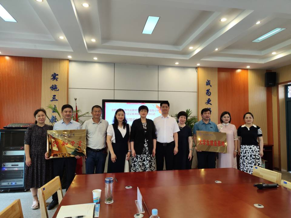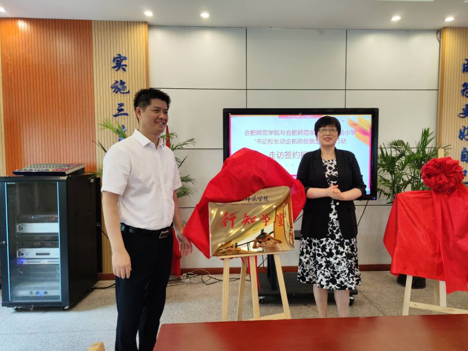 在签约授牌仪式上,方东玲、杨会谦为beat365中文官方网站附属实验小学大学生就业基地和行知学堂揭牌,李群、彭正签署了合作协议。(教师教育学院:王磊)