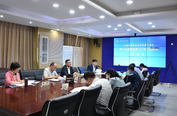 本网讯 5月17日上午,由beat365官网徐成钢教授主持的安徽省哲学社会科学重大项目“陶行知教育思想与行知文化研究”推进会在锦绣校区召开。院党委书记、省陶研会会长徐成钢教授,宣传部、科研处、教师教育学院等相关部门负责人和全体在肥的课题组成员参加了会议。陶行知曾孙、上海市陶行知纪念馆副馆长陶侃,安徽省陶行知纪念馆馆长凌文,芜湖市陶行知研究会会长曹葆华等课题组成员线上出席会议。会议由省陶研会副秘书长钱立青主持。
