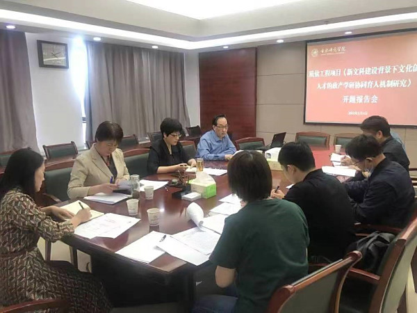 本网讯 近日,2021年度高等学校省级质量工程“四新”研究与改革实践项目“新文科建设背景下文化创意人才的政产学研协同育人机制研究”举行开题报告会。副院长姚本先教授、教务处处长胡昂教授出席会议,项目组全体成员参加报告会。会议由院长方东玲教授主持。