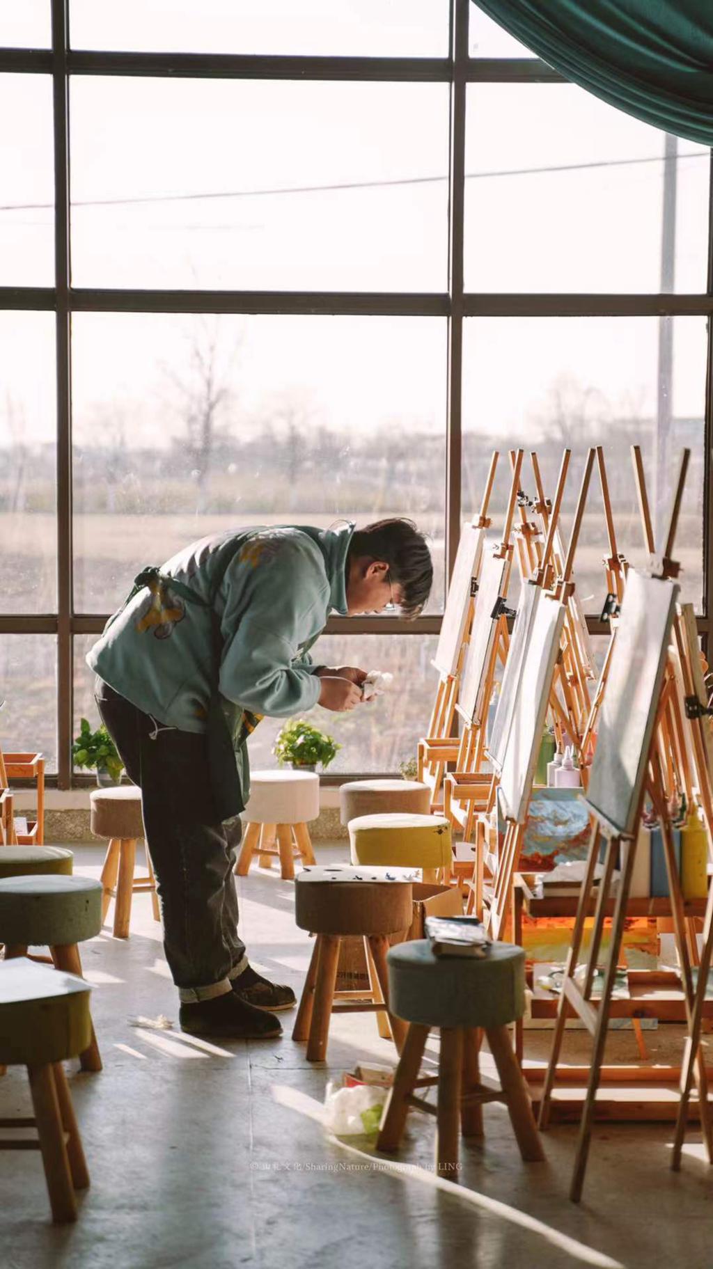 工作室成立后,他们也面临着新的困难和挑战,原有的项目难以维持工作室的正常运转,不得不另找出路。吕世强结合自己的专业特长,顺应时代发展潮流,结合“共享”和“美育”主题,提出了“共享画室”项目,得到了团队其他成员的认可。共享画室项目,就是将闲置空间、场地及绘画用品最大程度利用起来,为零基础绘画爱好者提供绘画实践服务,通过共享达到资源的最优配置,通过全民绘画推动美育工作发展,弘扬中华美育精神。
