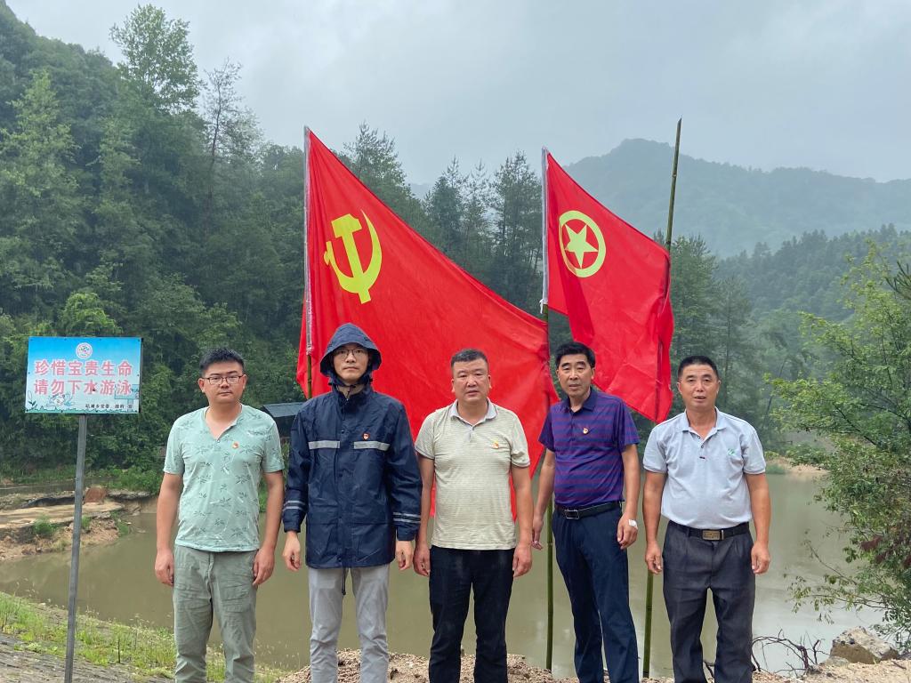 胡正阳参加防汛值守(左二)