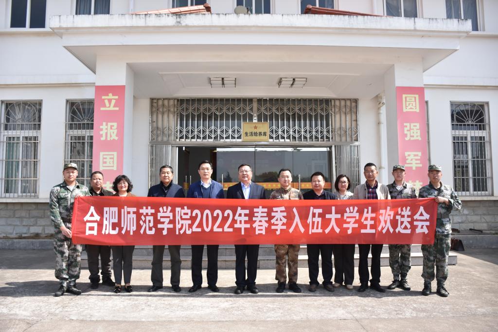 本网讯 3月9日上午,学院在某役前训练基地举行2022年春季应征入伍大学生欢送会。院党委书记徐成钢出席欢送会,办公室、保卫处(人武部)等部门负责人及相关二级学院负责人参加欢送会。