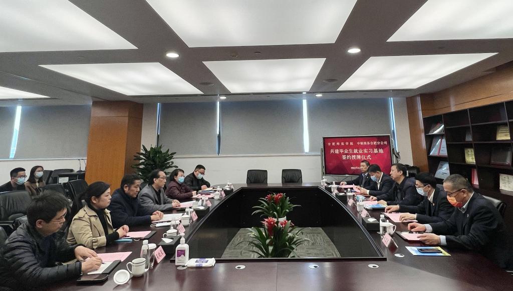 双方进行了座谈交流。王宏伟代表公司对姚本先一行到访表示热烈欢迎。他简要介绍了中银金融商务有限公司特别是合肥分公司基本情况,重点介绍了我院毕业生在公司工作生活情况,期待进一步深化银校合作关系,实现互利共赢。姚本先对王宏伟等热情接待表示感谢。他就学院历史沿革、办学特色、专业分布、人才培养、就业教育等进行了介绍。双方表示,将进一步加强沟通协调,对接发展战略,发挥彼此优势,在毕业生实习就业、员工培训、思想教育等方面拓展合作渠道,实现共同发展。