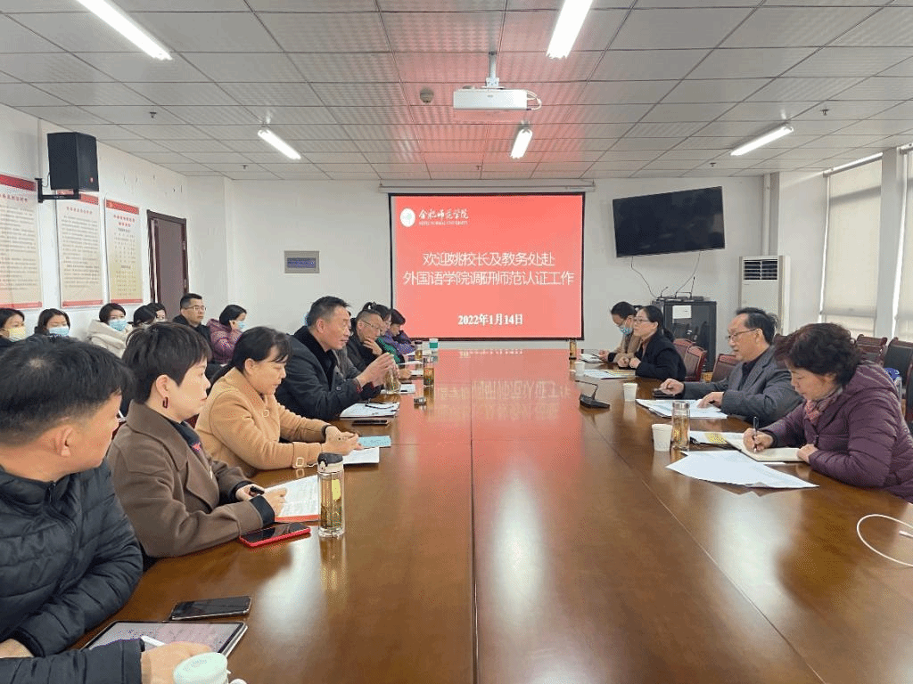 本网讯 为进一步推进英语师范专业认证工作,1月14日上午,院党委委员、副院长姚本先带领教务处负责人等赴外国语学院调研指导英语师范专业认证工作。会议在行知楼1002会议室举行,外国语学院党政领导班子及英语师范专业认证工作组全体成员参加会议。
