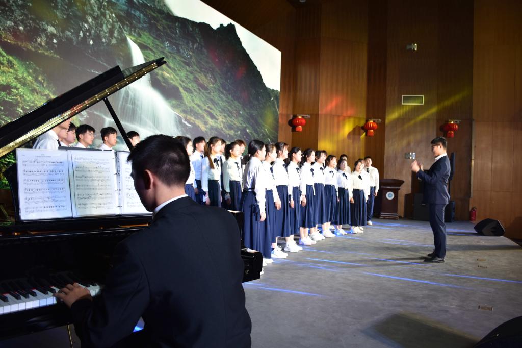 院领导为受表彰的集体和个人颁奖,并在演出结束后与全体演出人员合影留念。(院团委学生记者:王新鑫/文 院团委:王露/图)