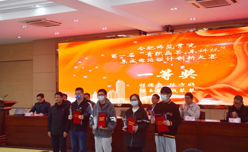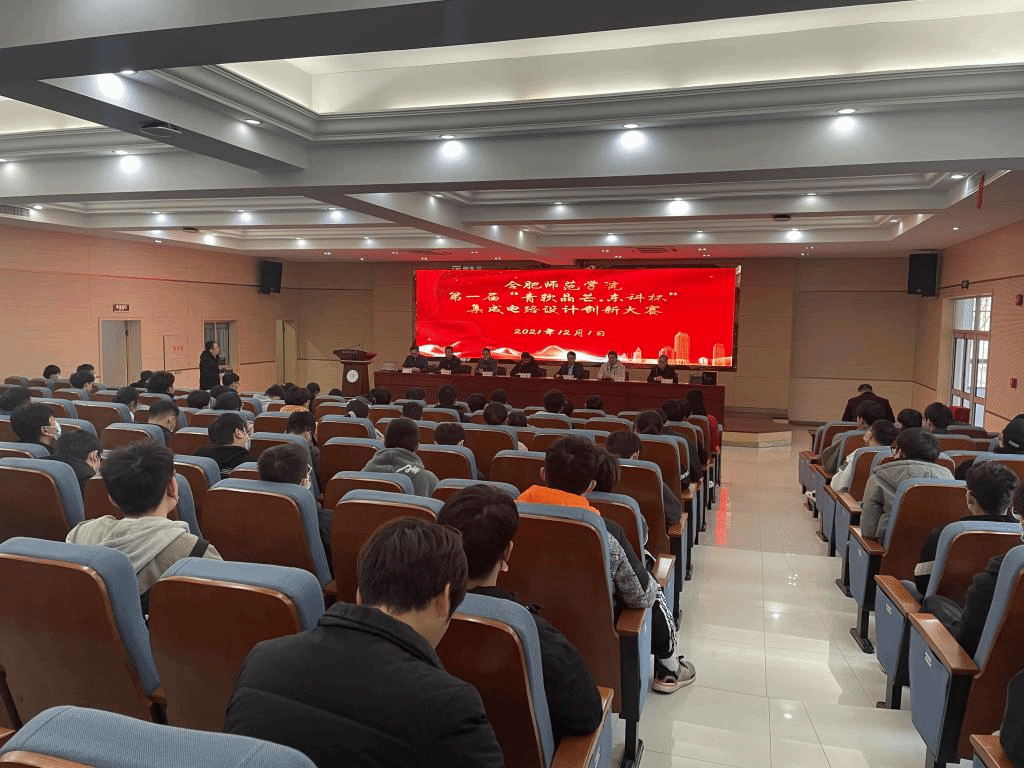 当日下午在锦绣校区学术报告厅举行了竞赛颁奖典礼,教务处、电子信息与电气工程学院以及该院微电子系相关负责人,安徽青软晶芒微电子科技有限公司、青岛青软晶尊、东科半导体(安徽)股份有限公司相关负责人,电子信息与电气工程学院师生代表参加会议。颁奖结束后,青岛青软晶尊研发总监、高级工程师董科为在座师生作了一场生动的“集成电路”专题讲座,参会师生积极交流互动。