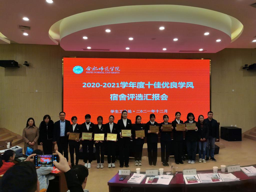 本网讯 12月1日下午,我院2020-2021学年度“十佳优良学风宿舍”评选汇报会在滨湖校区学术报告厅举行,来自各二级学院15个优秀宿舍参选汇报,“三优”评审工作组成员、各二级学院辅导员以及学生代表200余人参加汇报会。