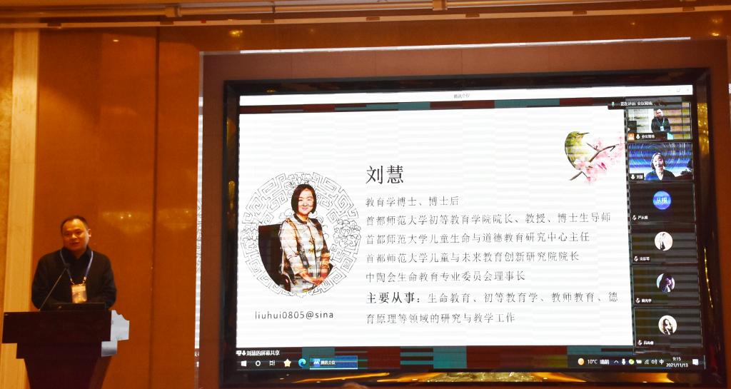 首都师范大学、杭州师范大学、安徽师范大学的三位专家分别作特邀专题报告。首都师范大学初等教育学院院长刘慧教授报告为“新时代师范生师德养成的核心要义”,她通过对新时代师德方位的重新定位,重点关注后疫情时代的生命教育,鼓励教师做儿童生命成长的“引路人”,从生命出发,以爱育爱,探索构建师范生师德养成教育的五大体系。严从根教授结合杭州师范大学的教师教育教学实践,以“教师教育:精神引领的艺术”为题作了大会报告,对“我们到底需要什么样的教师教育”这一问题作了深入思考,并针对教师教育的培养给出了创新性的意见。阮成武教授则结合陶行知精神作了题为“为何、何为、为谁:教师成为大先生的时代镜像”的发言,从三个层面详细阐述了“大先生”的内涵,同时指出教师成为大先生的过程也体现了社会发展赋予新时代教师的历史机遇和社会使命。