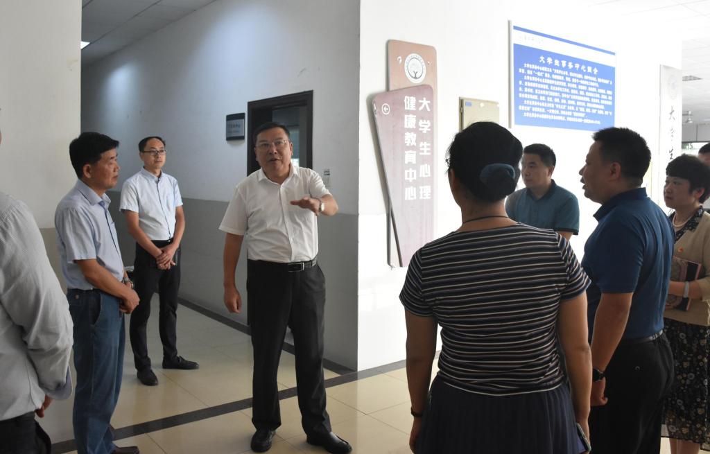 本网讯 为深入落实省委教育工委有关文件精神,消除校园安全隐患,夯实疫情防控工作,确保本学期尤其是国庆期间校园和谐稳定,9月29日,学院党委书记徐成钢、党委副书记吴昕春、副院长谢阳群分别带队深入校园开展安全与疫情防控检查,办公室、宣传部、教务处、学生工作处、后勤处、资产管理处、滨湖校区综合管理办公室、基建办、信息技术中心、保卫处负责人,以及后勤处和保卫处相关工作人员参加检查。