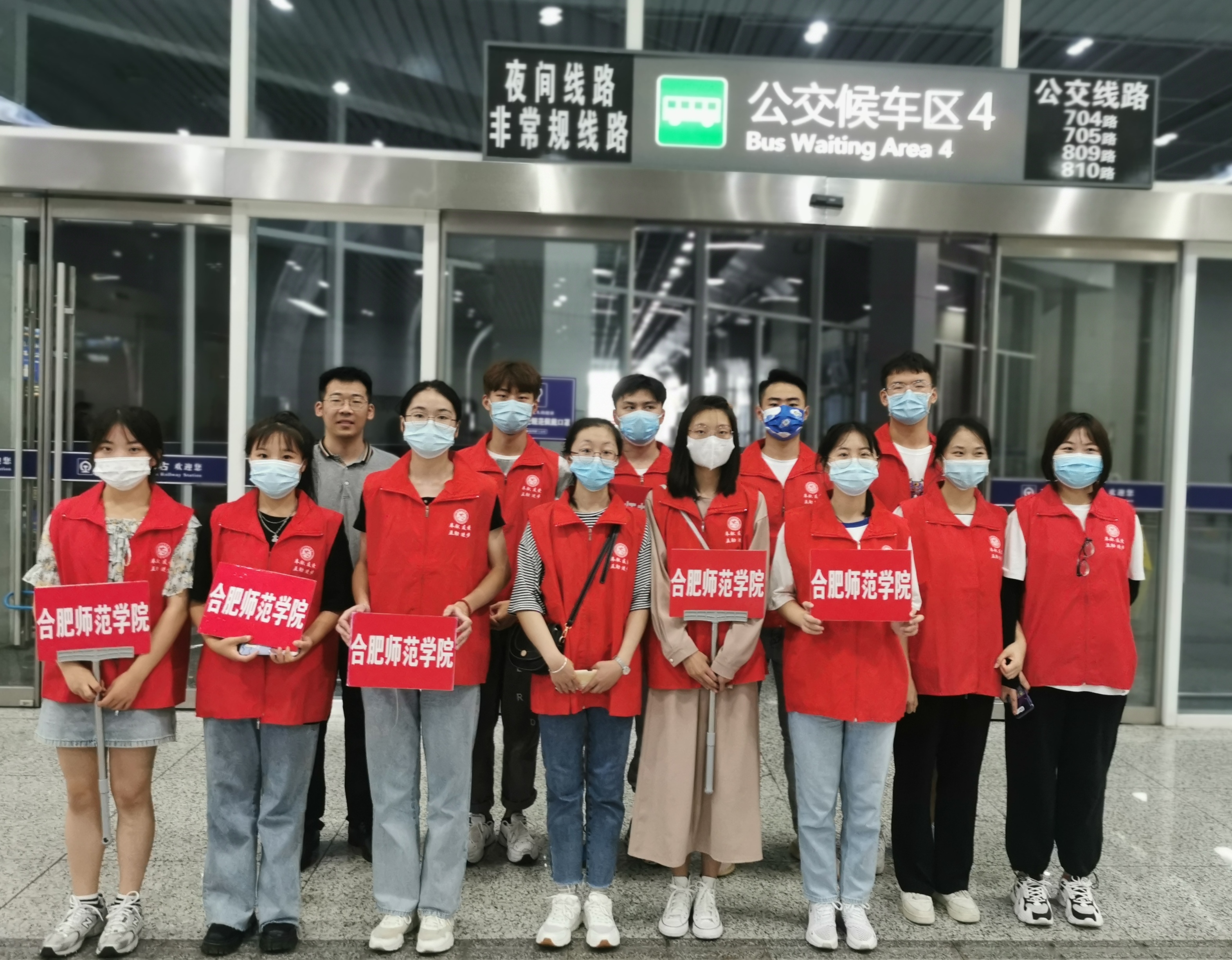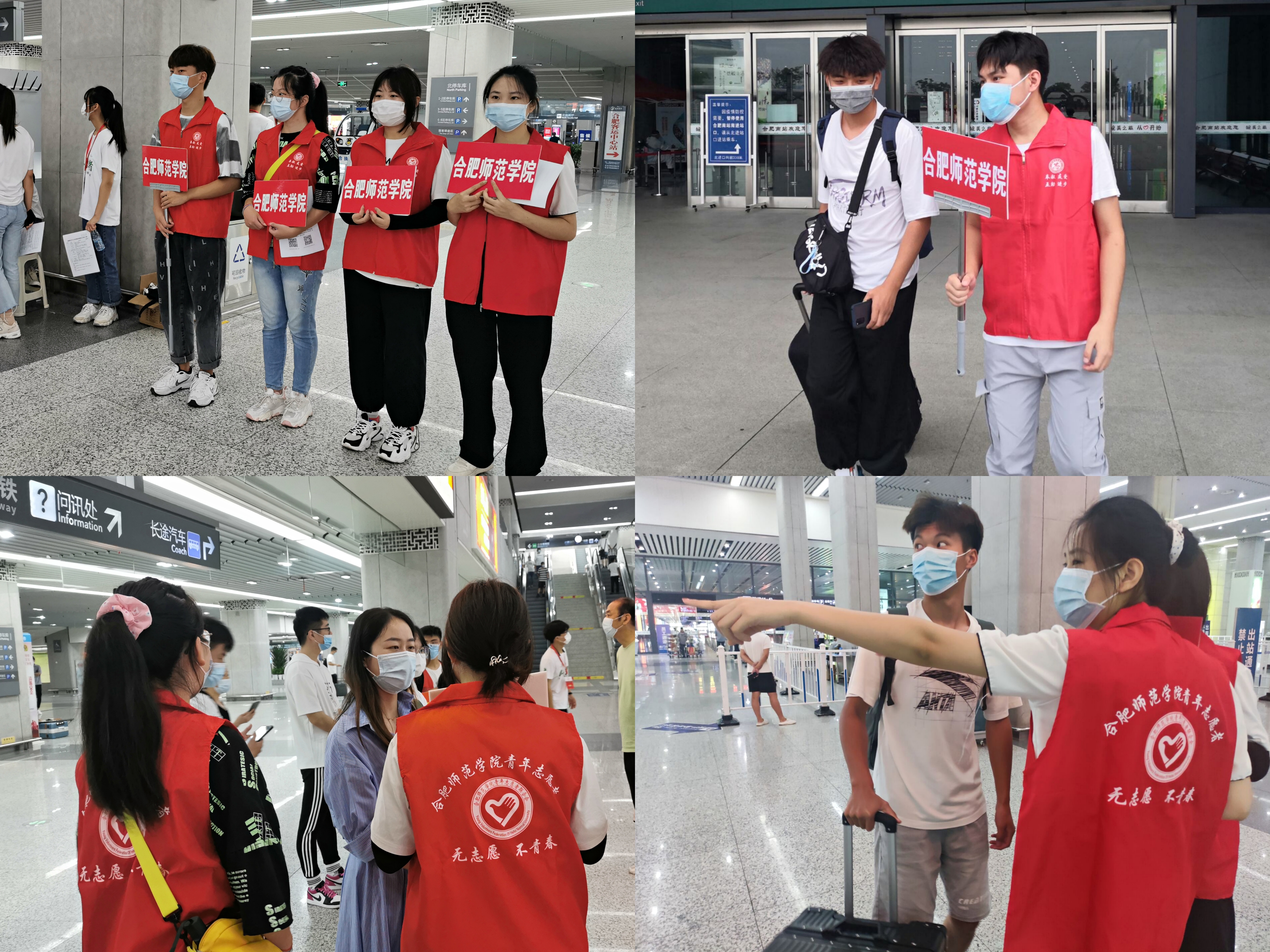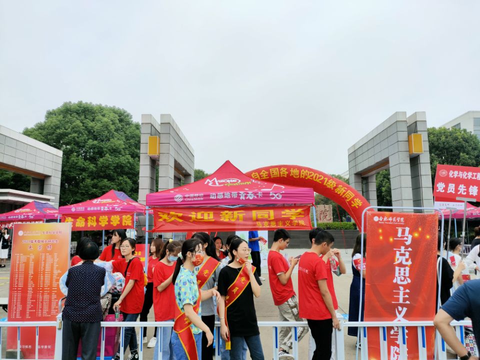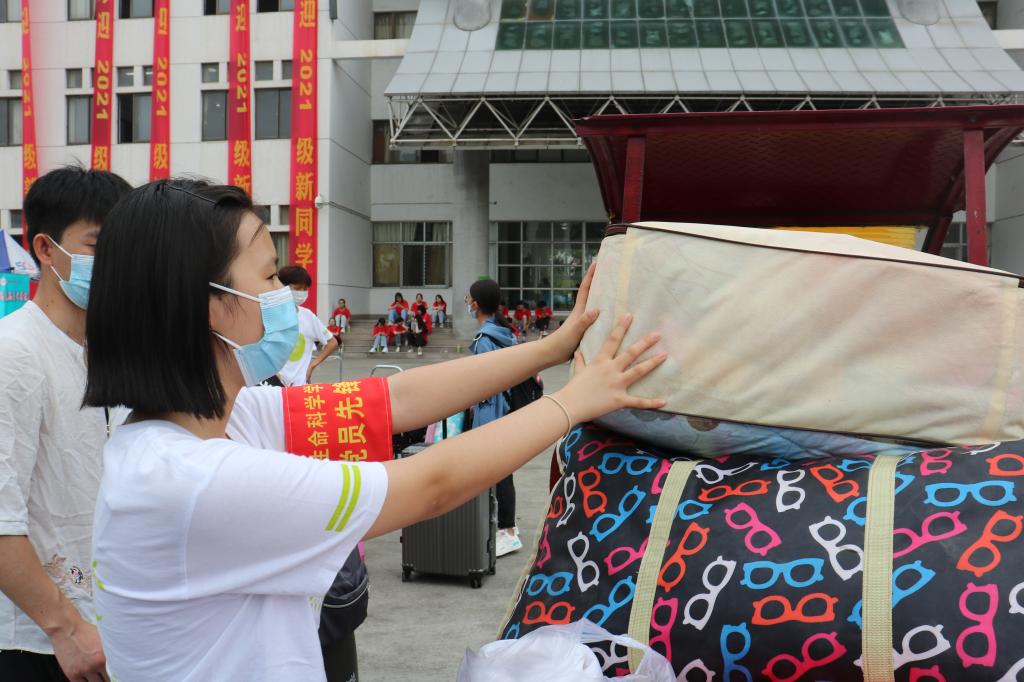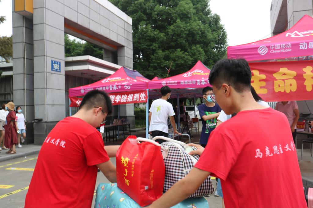 本网讯 9月4日,是beat365中文官方网站2021级新生开学报到的日子。金风送爽,秋色宜人,迎新工作井然有序地开展。根据上级防疫要求,新生家长无法进入校园,帮助新生顺利报到入住的重任则交到了各位老师和青年志愿者的肩上。为了确保新生顺利入学,学生处、团委组织开展了接站服务工作,志愿者们分组前往合肥站和合肥南站,为新生及其家长提供报到咨询、路线指引、行李搬运等服务,延续往年志愿者们与新生“多对一”的服务模式,确保疫情防控落实到位、迎新工作顺利进行。