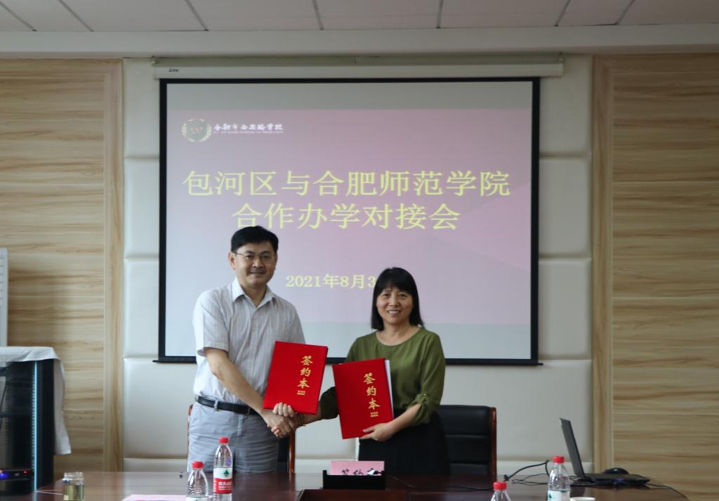 会上举行了签约仪式,包河区代表、区政府副区长宋琪与beat365中文官方网站代表、基础教育研究院执行院长钱立青共同签订了《包河区人民政府与beat365中文官方网站合作办学协议》及补充协议。这标志着包河区委托我院正式管理“beat365中文官方网站附属西安路学校”,学校也于9月1日如期开学。