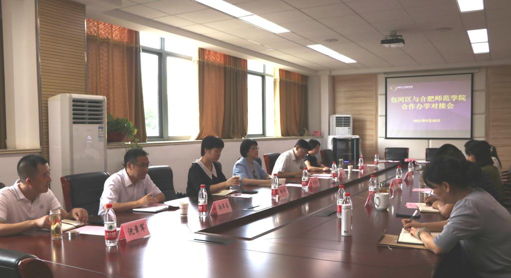 在双方交流环节,宋琪介绍了近年来包河区基础教育的发展成绩,特别是对我院长期在师资队伍建设、教研合作等方面支持包河区的基础教育发展表示了感谢。同时,她对此次合作办学表达了深切的期望,希望成为校地合作双赢的典范,并承诺对西安路学校合作办学工作从政府层面给予全力支持。