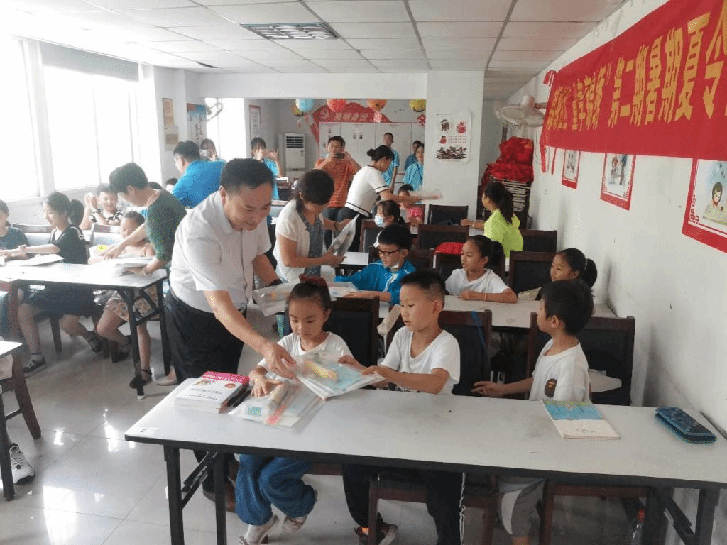 李进华一行向小先生们询问了学堂的基本情况、安全防护措施以及需求等,提醒大家注意安全,并为小学员发放了文具礼包,询问小学员“老师教的好不好”、“喜欢不喜欢”等,小学员们异口同声的回答“好”“喜欢”。