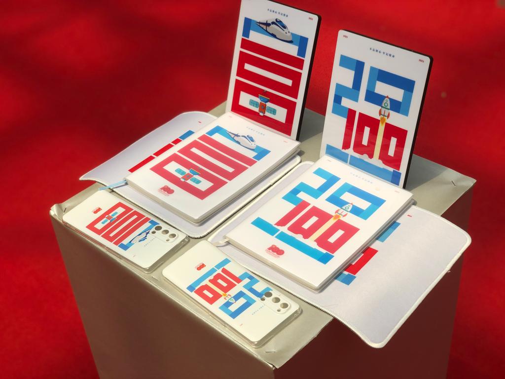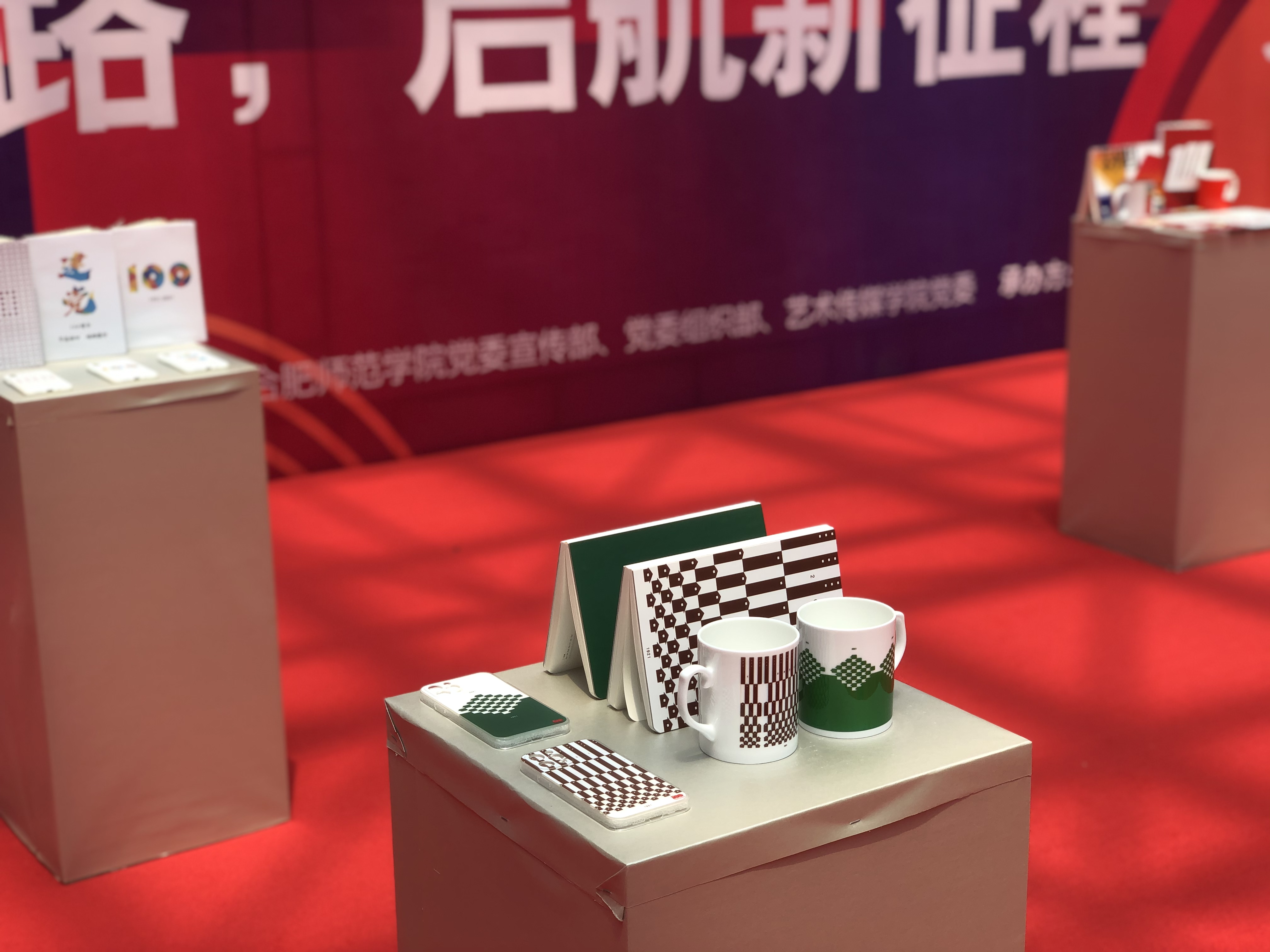实体作品充满创意、极具活力。作品“富强”系列巧妙的将建党百年的“100”元素用红色装饰并内嵌到富、强两个汉字当中,用高铁、卫星、火箭等元素代替汉字笔画,保证了汉字完整的同时,以图文并茂的形式生动展示了在中国共产党领导下中国现代科技的迅速发展;从“毛坯瓦房”到“高楼大厦”,从“邮件”到“微信”,作品“巨变100年”用抽象画的形式展现了百年来人民生活水平的巨大进步。一幅幅优秀的设计组图生成了鼠标垫、手机壳、摆台、水杯、笔记本、钥匙扣等众多种类的文创实物,呈现在合师学子生活中,使党史学习教育印在眼中、握在手中、记在心中,成为合师青年爱国、爱党的青春表达方式,筚路蓝缕创伟业,初心不忘再起航,新时代的中国青年将永远跟党走,用青春力量谱写新的华章!(宣传部、组织部、艺术传媒学院)