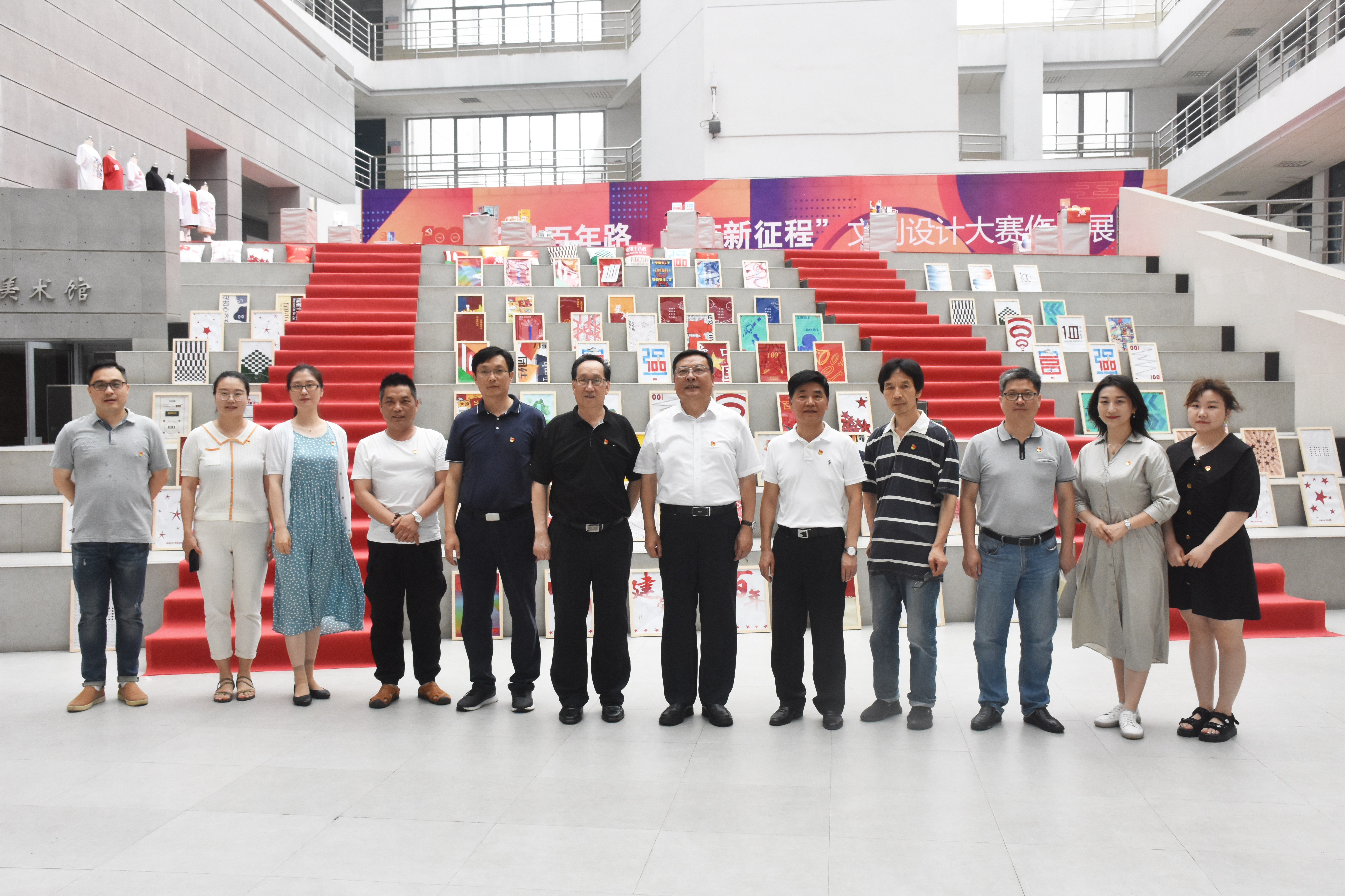 本网讯 为庆祝中国共产党成立100周年,展示中国共产党百年光辉历程、伟大成就和宝贵经验,在广大师生中传承红色基因、赓续共产党人的精神血脉,大力营造奋进新征程、创造新奇迹、展现新气象的浓厚氛围,由校党委宣传部、党委组织部,艺术传媒学院党委主办,艺术传媒学院分团委承办的“奋斗百年路 启航新征程”文创设计大赛作品展近日在艺术楼行知美术馆隆重展出。校党委书记徐成钢、校党委副书记吴昕春、副校长姚本先在校办公室、组织部主要负责人陪同下参观文创设计大赛作品展。