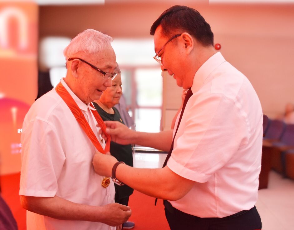 党委书记徐成钢为“光荣在党50年”老党员代表颁发纪念章