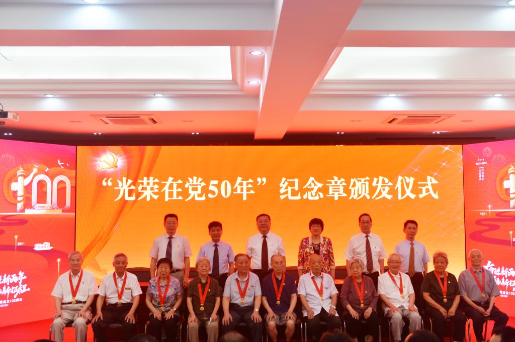 院领导与“光荣在党50年”纪念章获颁者代表合影