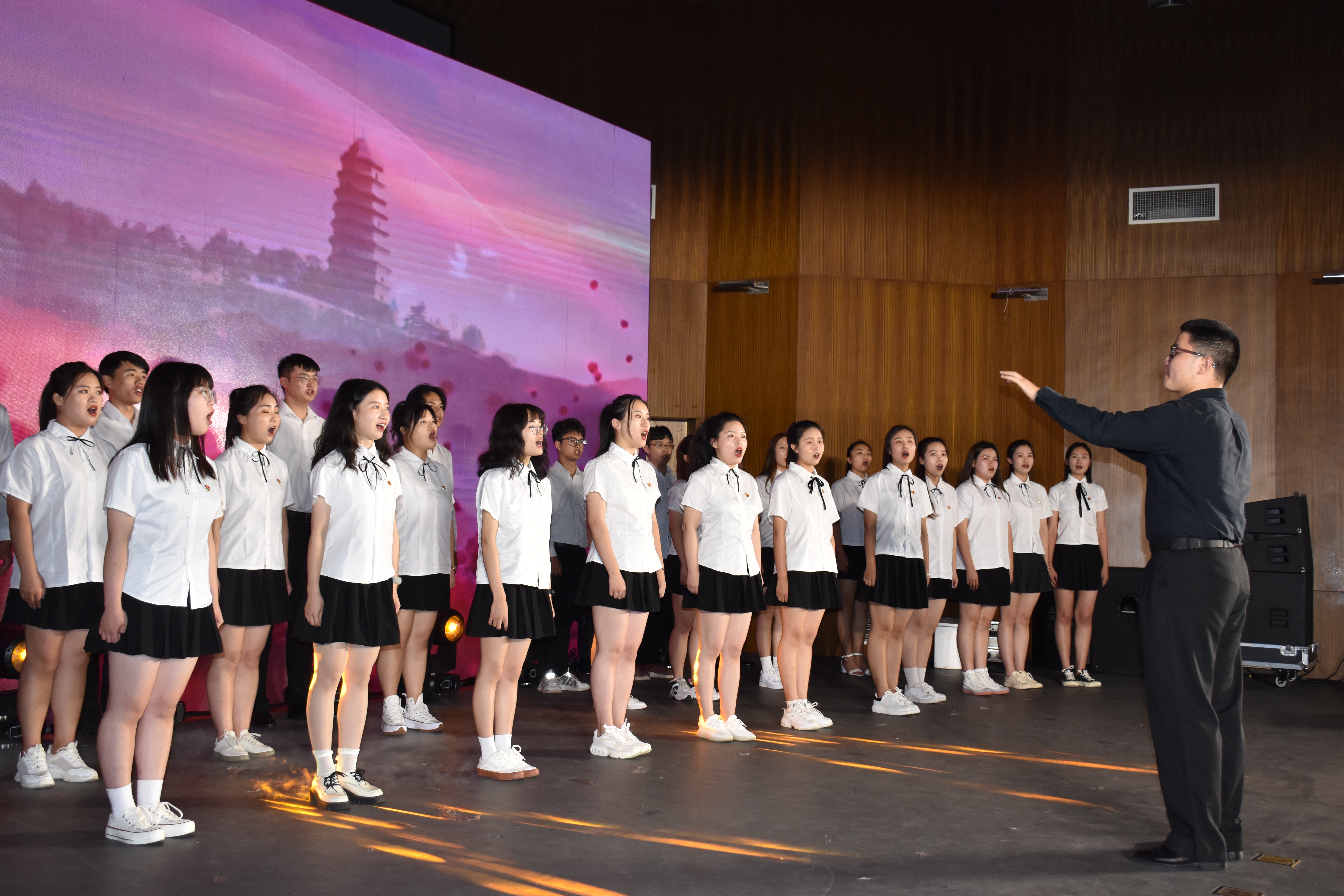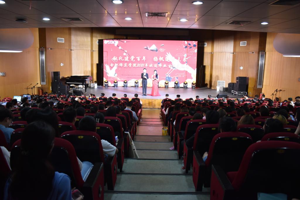 据悉,此次晚会以“献礼建党百年 扬帆筑梦未来”为主题,将红色元素融入晚会舞台,以激昂的青春之歌唱响毕业欢送曲,在校生、毕业生、校友合力展现了合师学子朝气蓬勃、昂扬向上、感恩母校的良好精神风貌,为2021届毕业生的大学时光划上了圆满的句号。(院团委学生记者:陈其美/文 院团委:王露/图)
