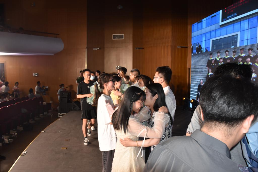 晚会期间,各二级学院毕业班辅导员登上舞台,诉说毕业寄语,并接受毕业生代表献花。师生拥抱告别、互相祝愿。现场观众用热烈的掌声表达对师生情的赞叹和对毕业季的祝福,场面温馨感人。