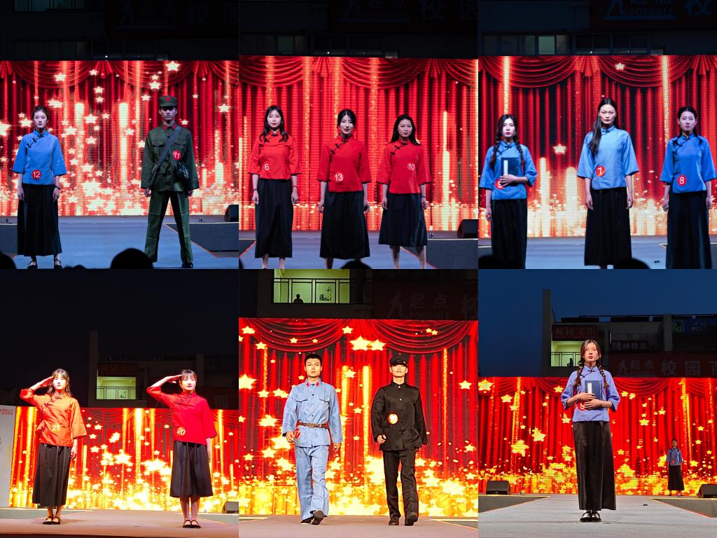 毕业展之后,模特们在热情的掌声和欢呼声中身穿红色军旅服,伴随着音乐的节拍声向观众缓缓走来,用坚定的步伐走向T台,致敬党的百年峥嵘岁月。模特们出色的表现点燃全场热情,彰显着合师学子“坚定理想信念,争做新时代青年”的青春风貌。