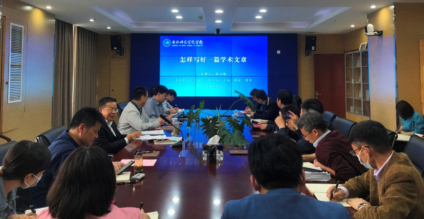 本网讯 为深入学习贯彻党的十九届五中全会精神,加强学报编辑队伍能力建设,不断提升期刊编辑质量,5月20日下午,学报编辑部在锦绣校区组织召开了编辑业务培训会。安徽省高等学校学报研究会理事长、《安徽大学学报》(哲学社会科学版)主编张治栋教授,党委委员、副院长、《beat365中文官方网站学报》主编曹卓良教授等编委会成员出席会议。《beat365中文官方网站学报》兼职编辑,编辑部全体人员及相关教师参加了培训会。会议由《beat365中文官方网站学报》执行主编、编辑部主任钱立青主持。