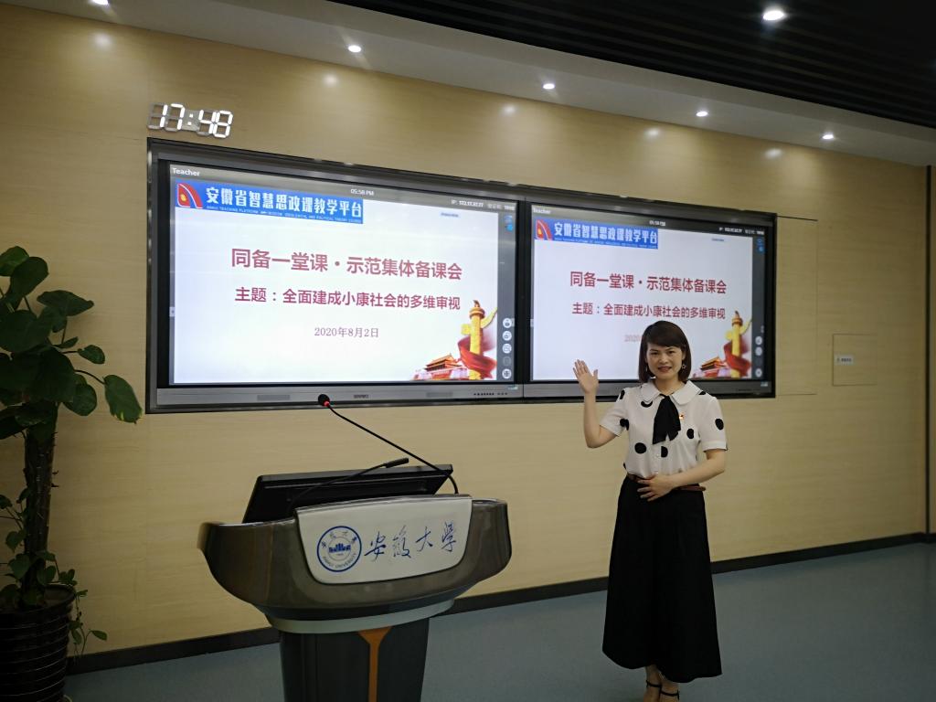 刘老师不仅课堂上为学生答疑解惑,总结教学内容,而且课后细心揣摩教学方法,积极参加教学比赛,以此提高教学能力。2019年7月,她参加安徽省第四届普通高校青年教师教学竞赛,以精彩的教学演示、流畅的语言表达、良好的现场互动,赢得了在场评委的一致好评,荣获三等奖。2020年8月,刘老师积极参与安徽大学组织的第一期“同备一堂课·示范集体备课”,录制《内涵·解读:全面建成小康社会与中国理论》“示范一堂课”,并在安徽省高校智慧思政平台和安徽省高校思政理论课教学资源网同步上线,供全省思政课教师培训班使用,805名思政课参培教师进行了观看,反响很好。