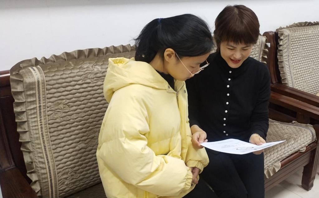 刘英老师利用课间通过《师生连心册》与学生交流谈心